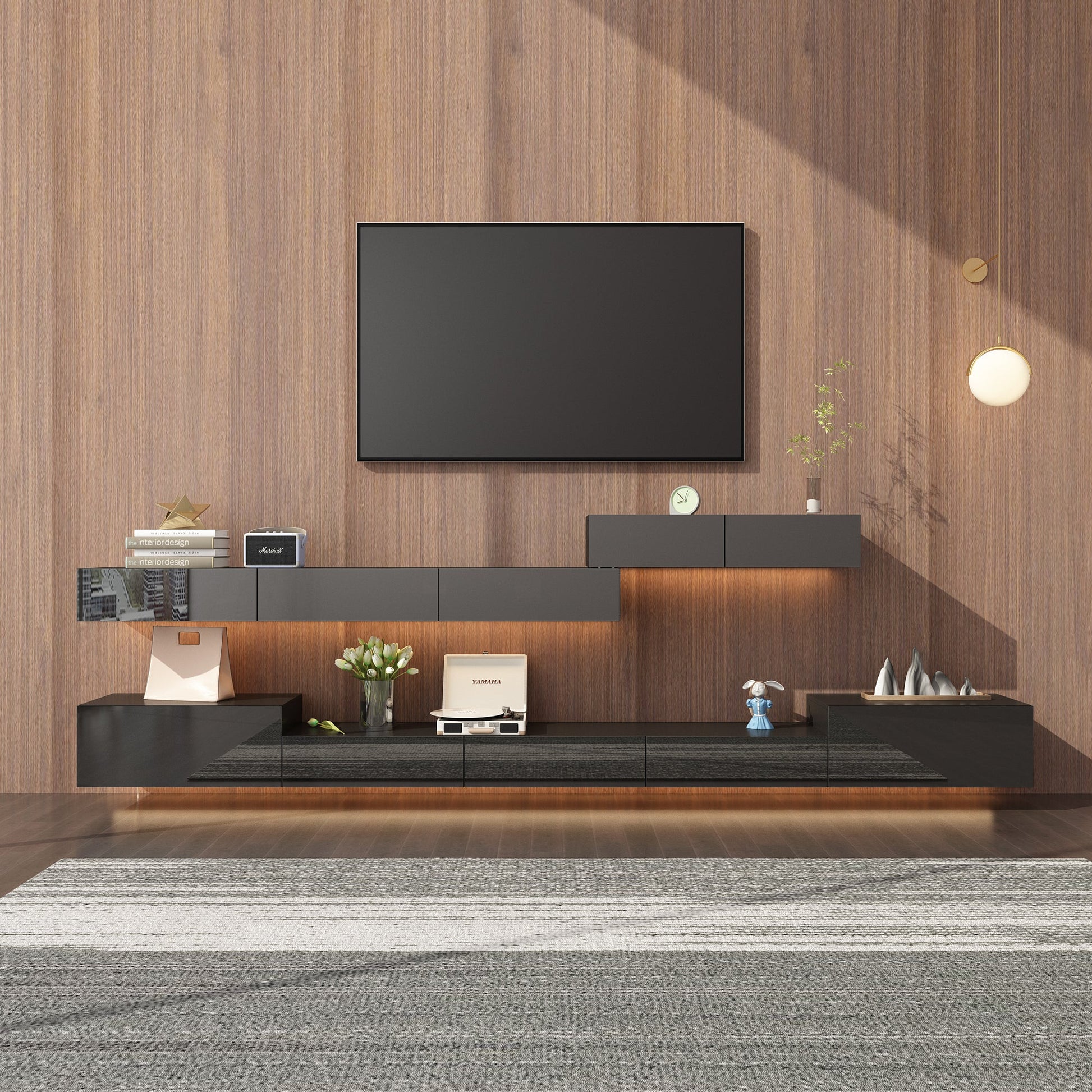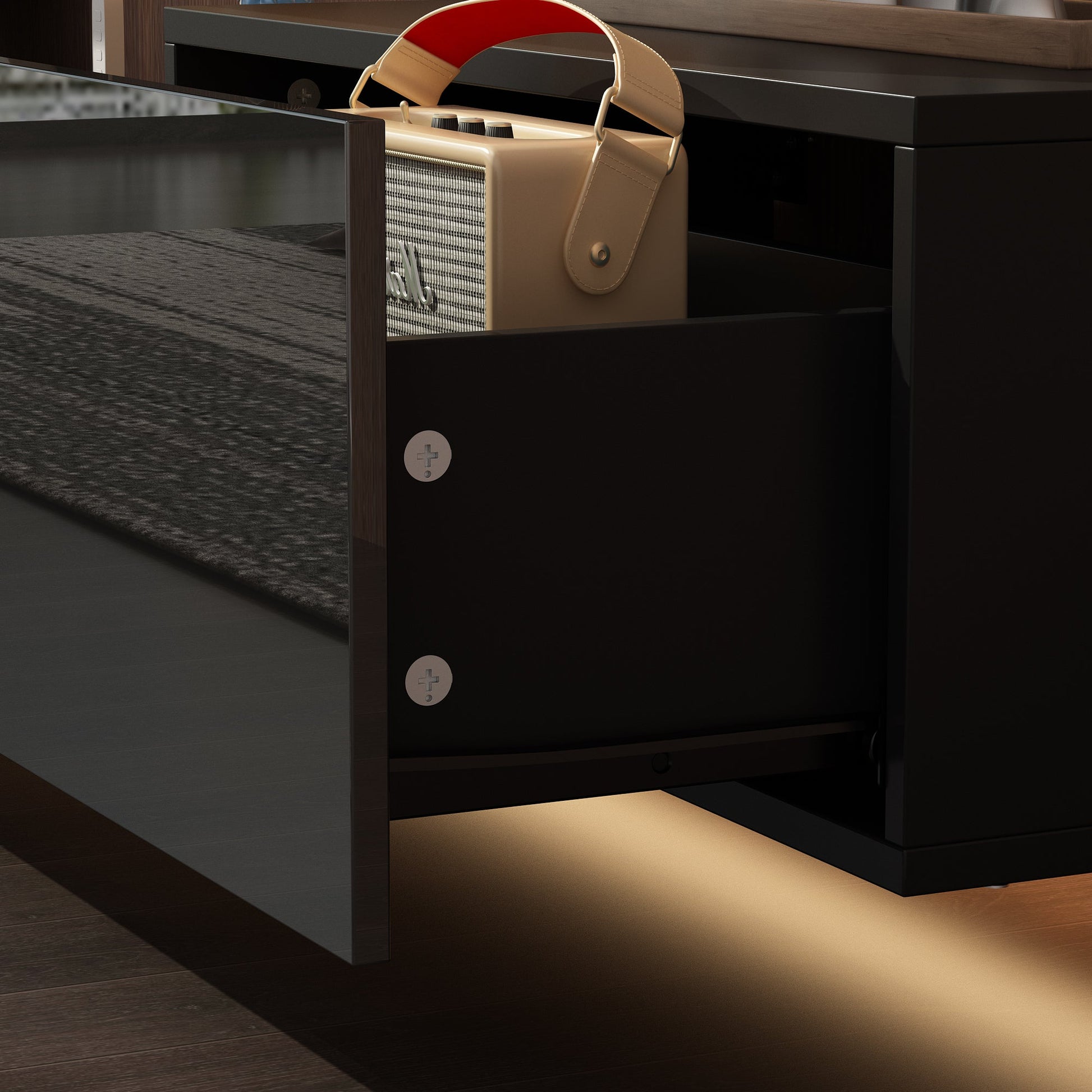 Meuble TV 2 pièces laqué brillant avec éclairage