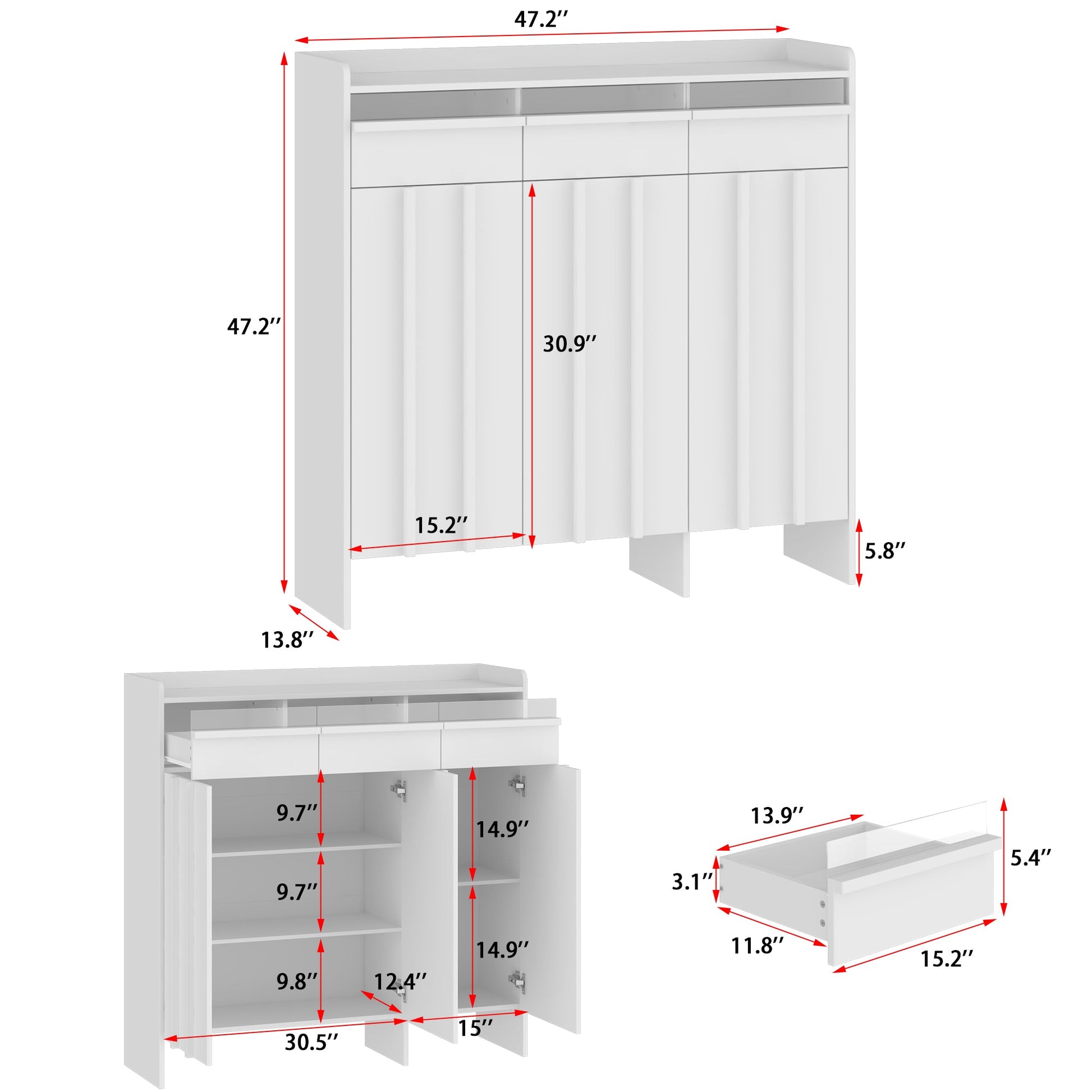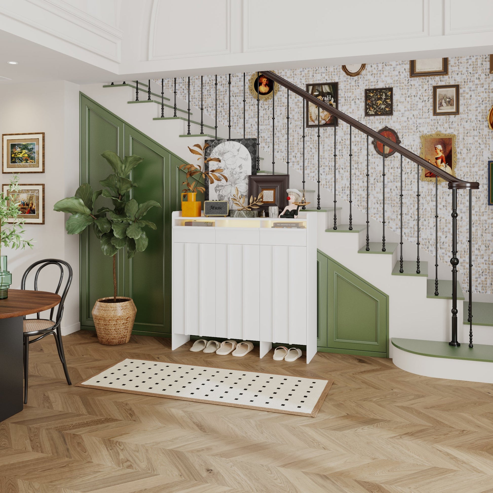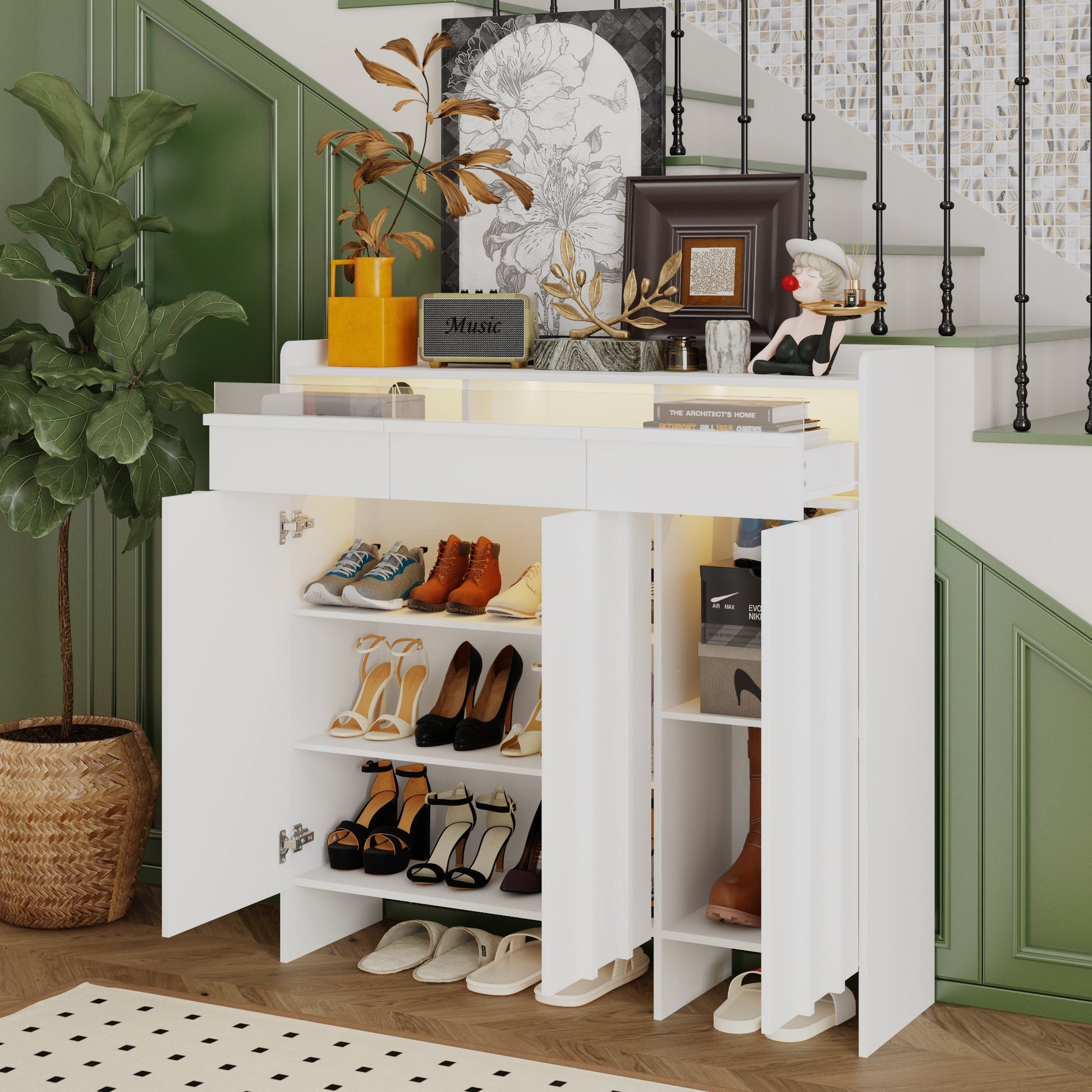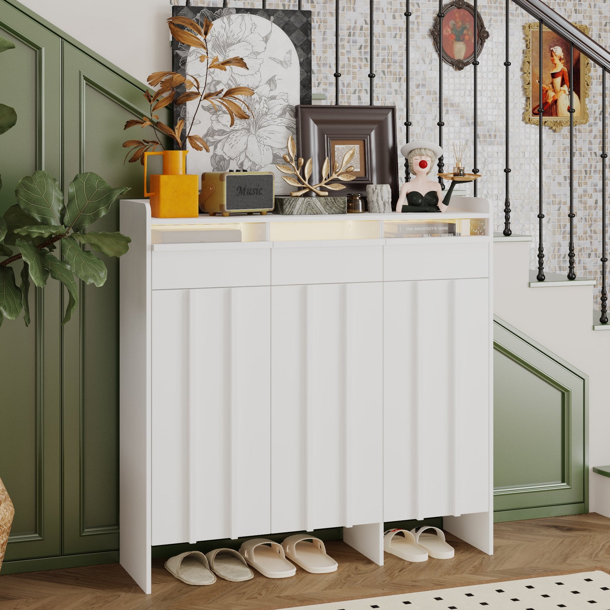 Meuble à chaussures à 3 tiroirs et 3 portes avec éclairage LED