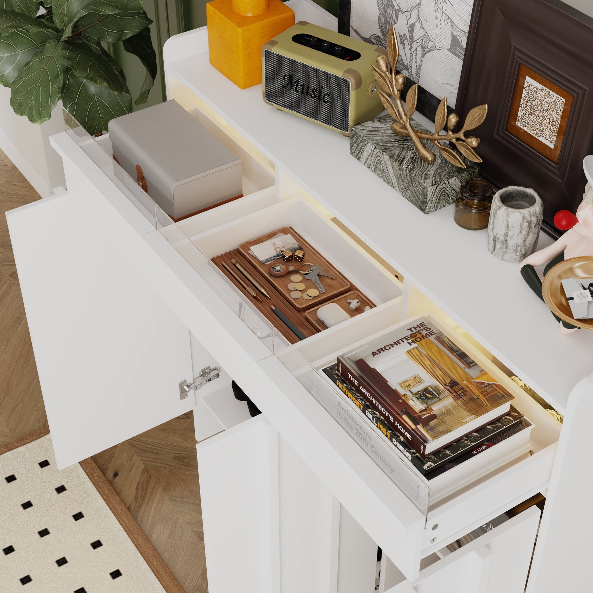 Optimisez votre rangement avec cet élégant meuble à chaussures à 3 tiroirs et 3 portes, alliant style et fonctionnalité. Doté de façades en acrylique épurées, ce meuble offre un espace généreux pour ranger chaussures, accessoires et autres. Un bandeau LED intérieur apporte une touche de luxe moderne, tandis que la partie inférieure comprend des placards spacieux avec étagères réglables pour s'adapter à différentes pointures. La partie supérieure est idéale pour créer un espace de rangement suspendu, vous permettant ainsi de personnaliser davantage le meuble selon vos besoins. Pour encore plus de capacité, vous pouvez aligner deux meubles côte à côte.
