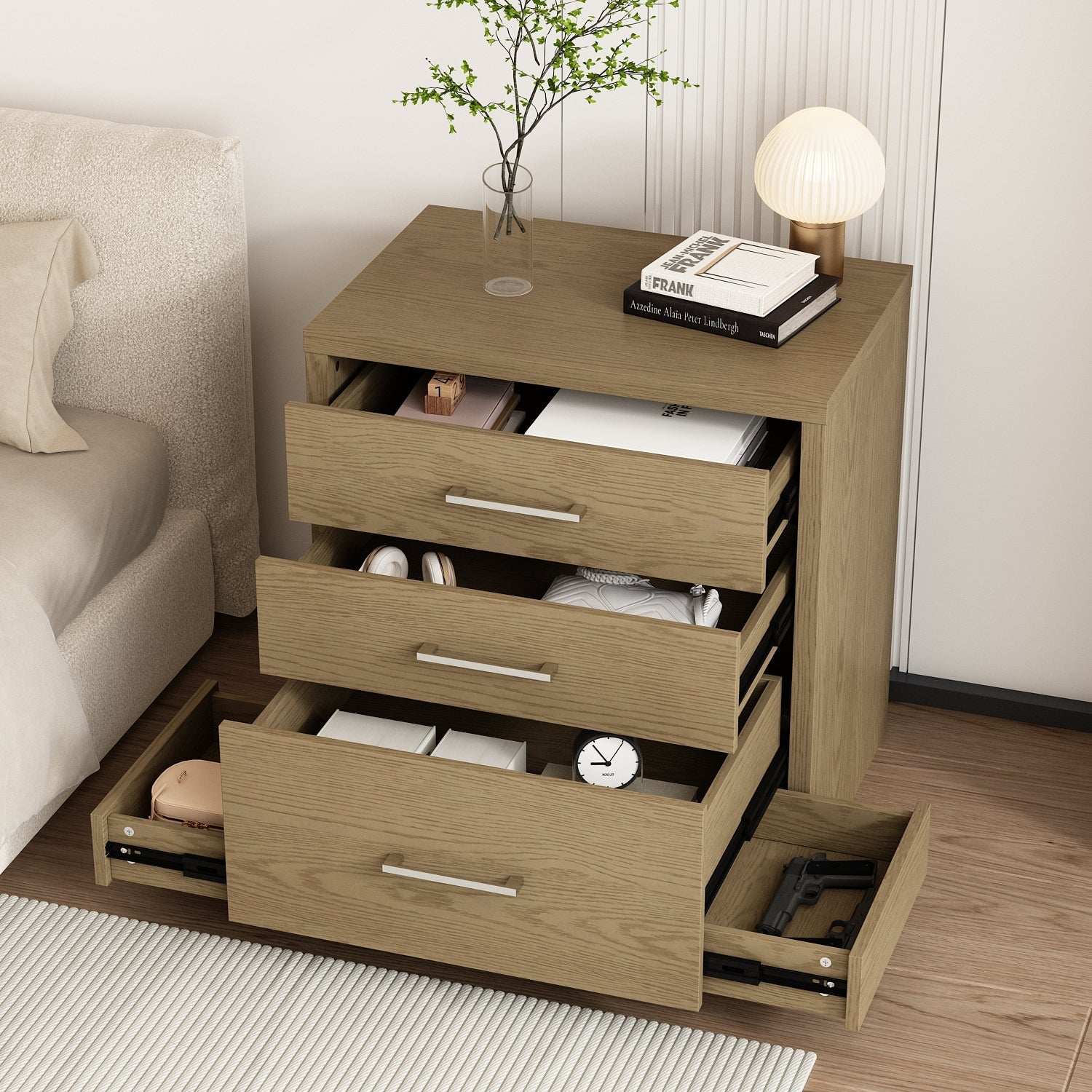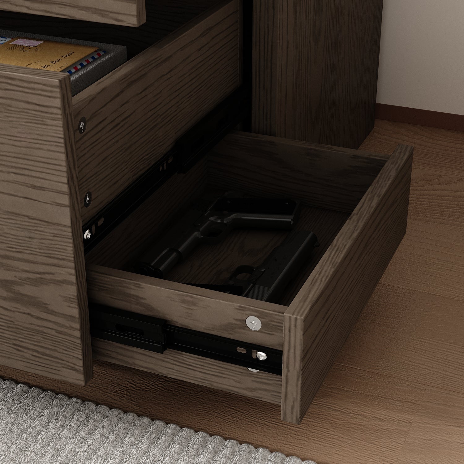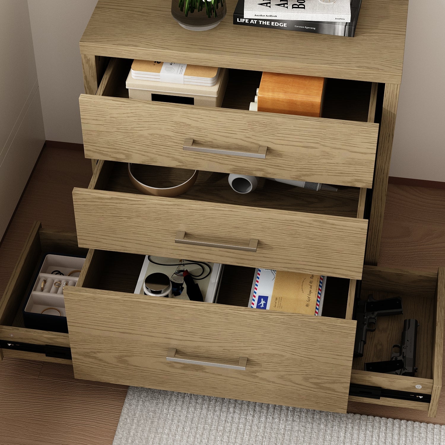 Ne vous laissez pas tromper par cette table de chevet à 3 tiroirs ! En ouvrant le tiroir du bas, vous découvrirez deux autres tiroirs dissimulés de chaque côté, parfaits pour ranger vos objets personnels comme votre portefeuille, vos cartes bancaires ou même une arme à feu. Son format compact en fera un complément idéal pour votre chambre ou votre salon !