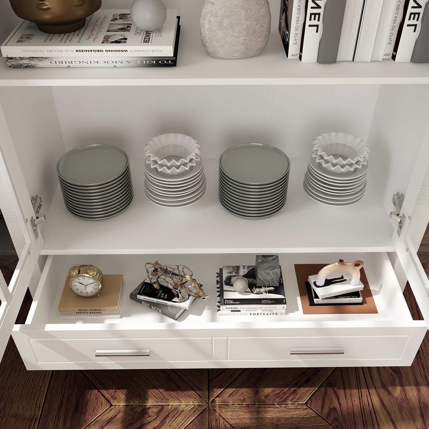 Cette bibliothèque élégante et stylée offre un bel espace pour ranger ou exposer vos objets ; elle convient à presque tous les styles de décoration.