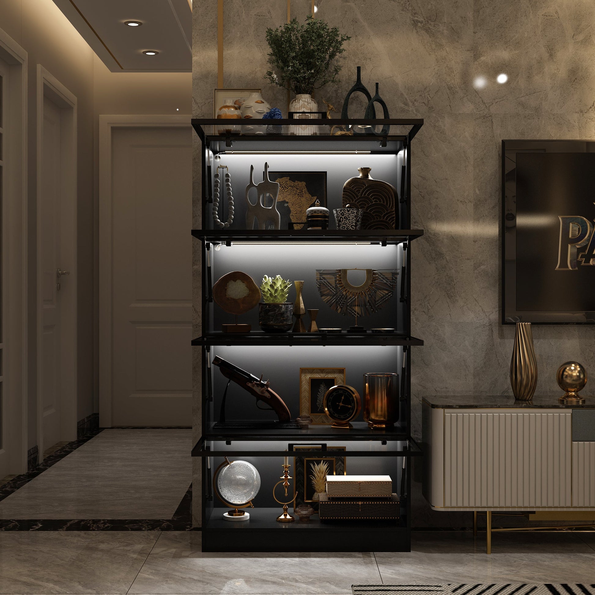 Vitrine vitrée à 4 niveaux avec éclairage LED