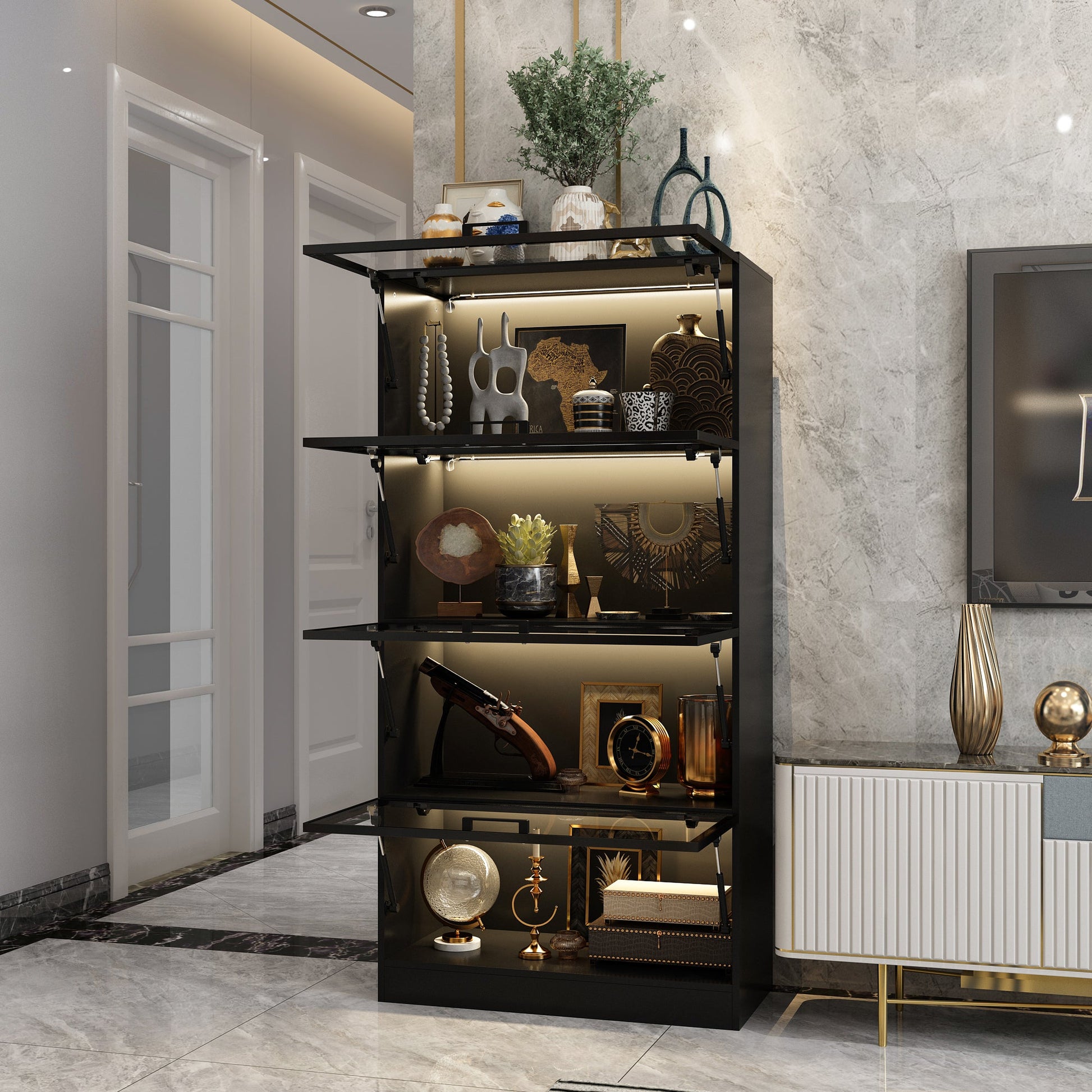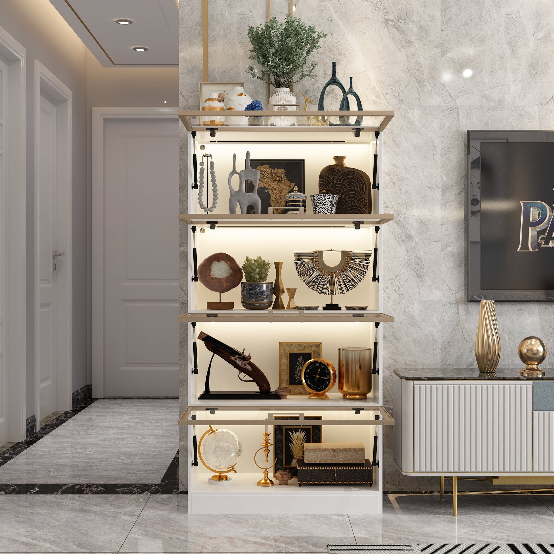Cette vitrine à quatre niveaux avec éclairage LED est idéale pour exposer et ranger vos précieuses collections. Son design moderne allie verre transparent et matériaux de haute qualité pour une visibilité optimale des objets présentés. L'éclairage LED intégré diffuse une lumière uniforme sur chaque niveau, mettant ainsi vos objets en valeur sous tous les éclairages. Que ce soit à la maison ou au bureau, cette vitrine apportera une touche de sophistication et d'élégance à votre espace.