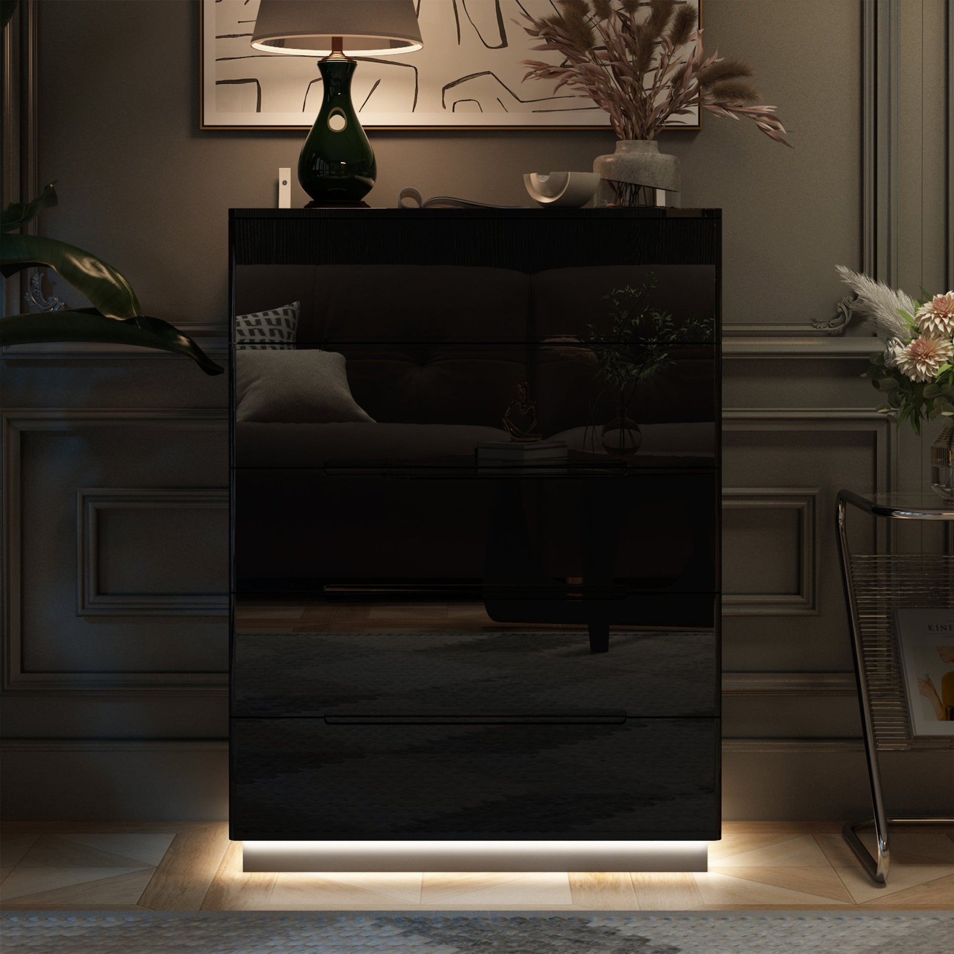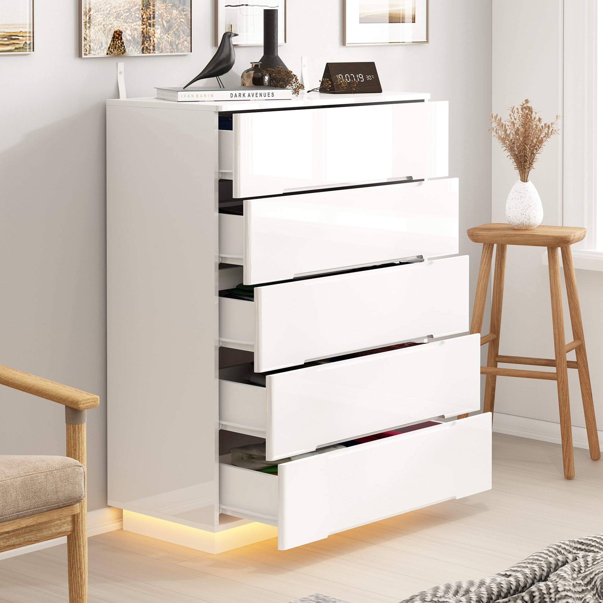 Sublimez votre intérieur avec notre élégant meuble à cinq tiroirs blanc laqué. Son design minimaliste et sa finition brillante apportent une touche de sophistication à n'importe quelle pièce tout en offrant un espace de rangement généreux. La bande lumineuse LED intégrée allie fonctionnalité et esthétique, créant une ambiance chaleureuse et accueillante.