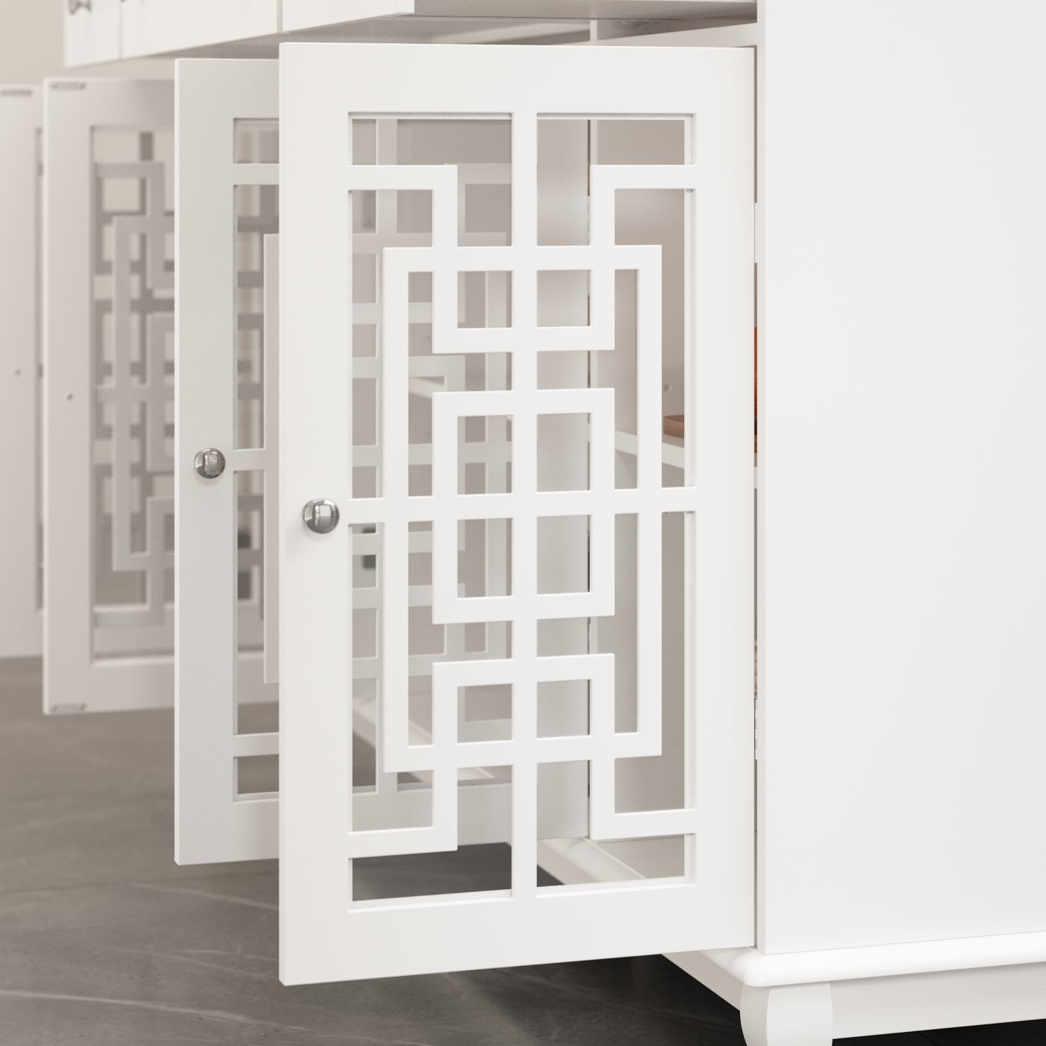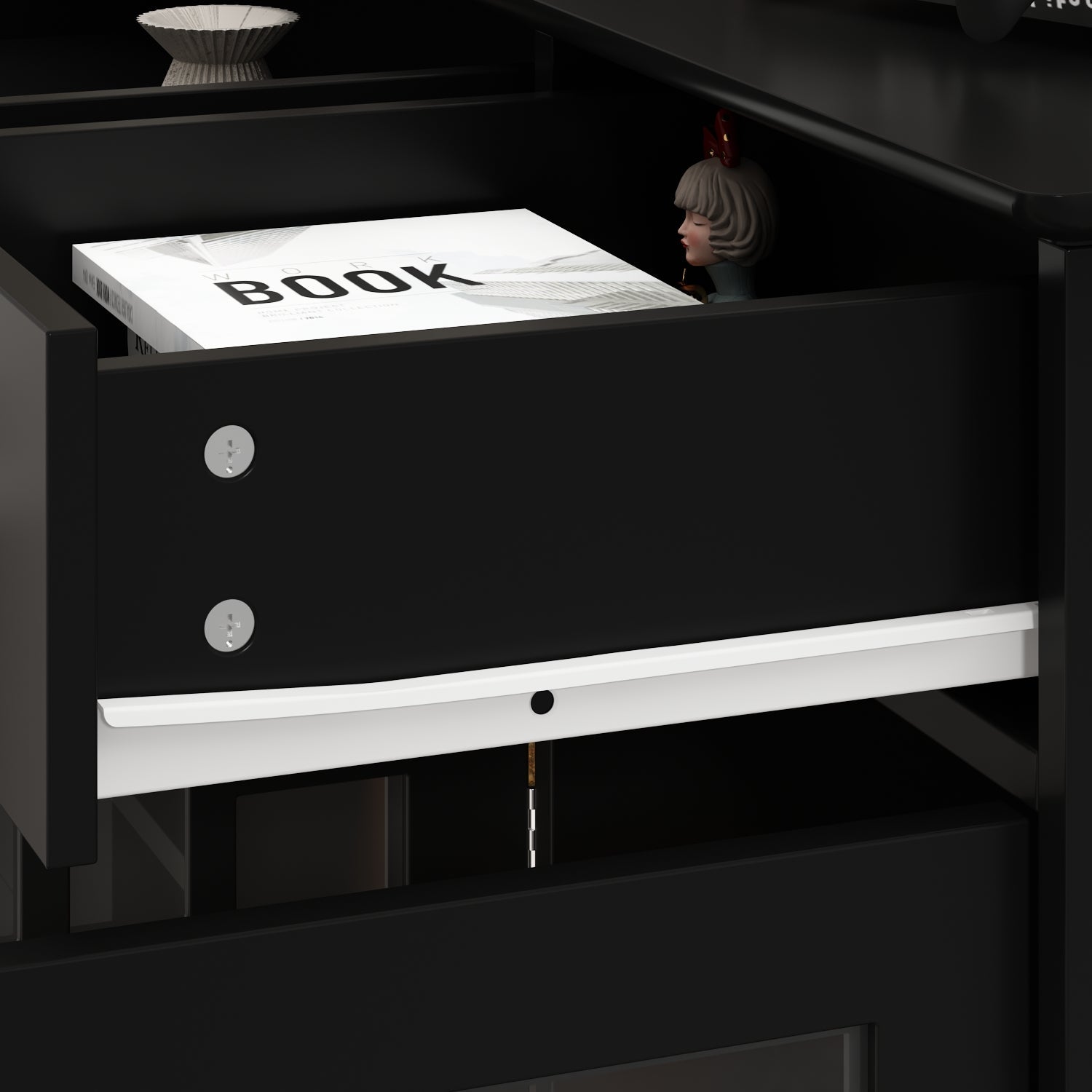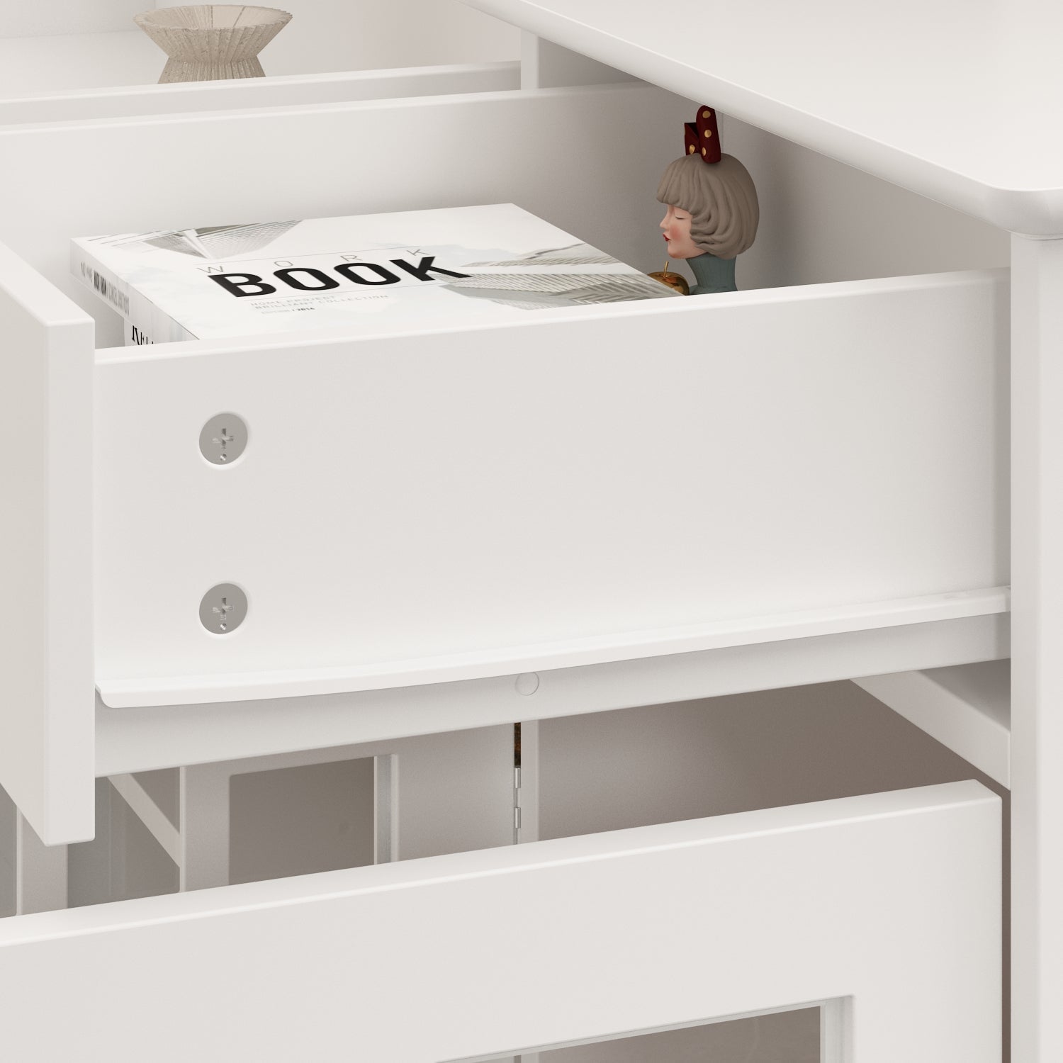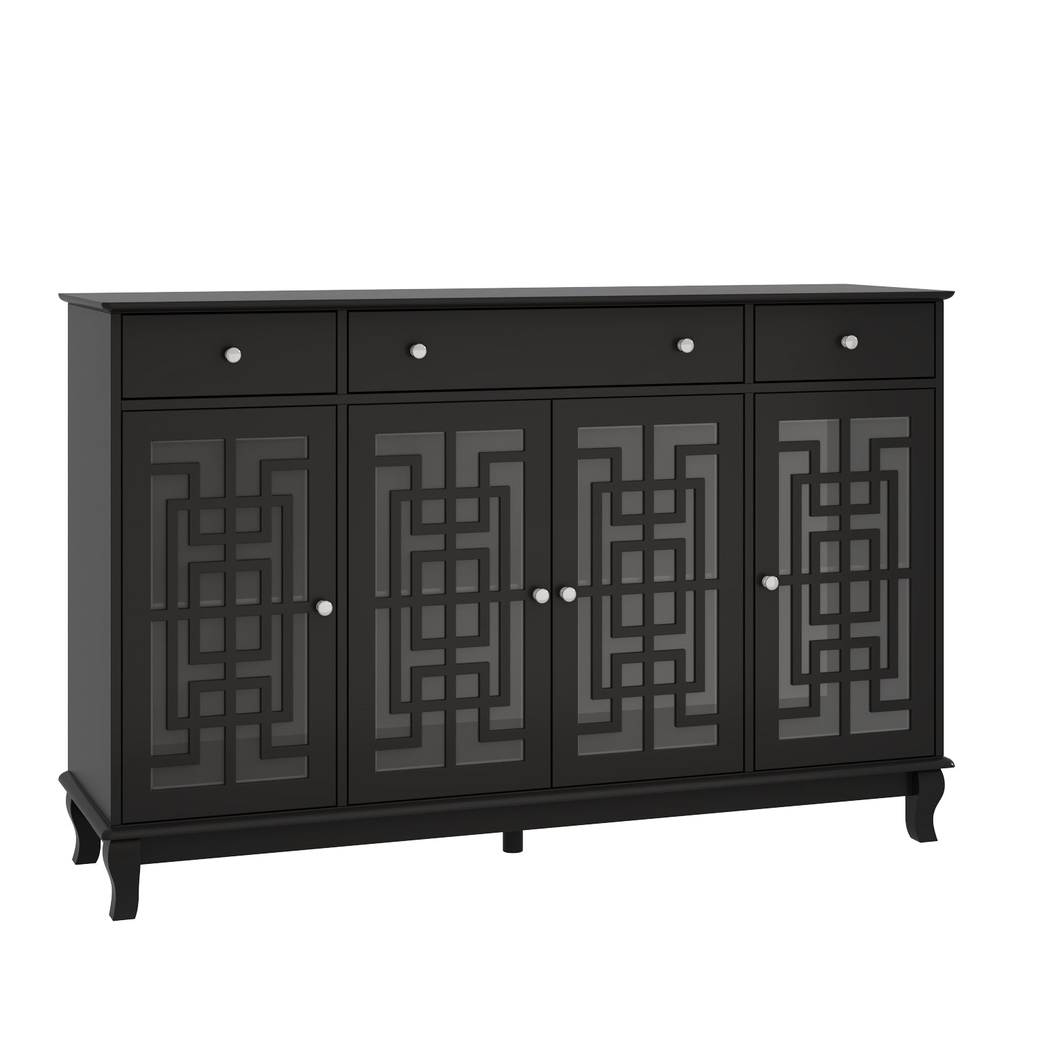 Buffet de cuisine avec portes vitrées, 3 tiroirs et 6 compartiments de rangement