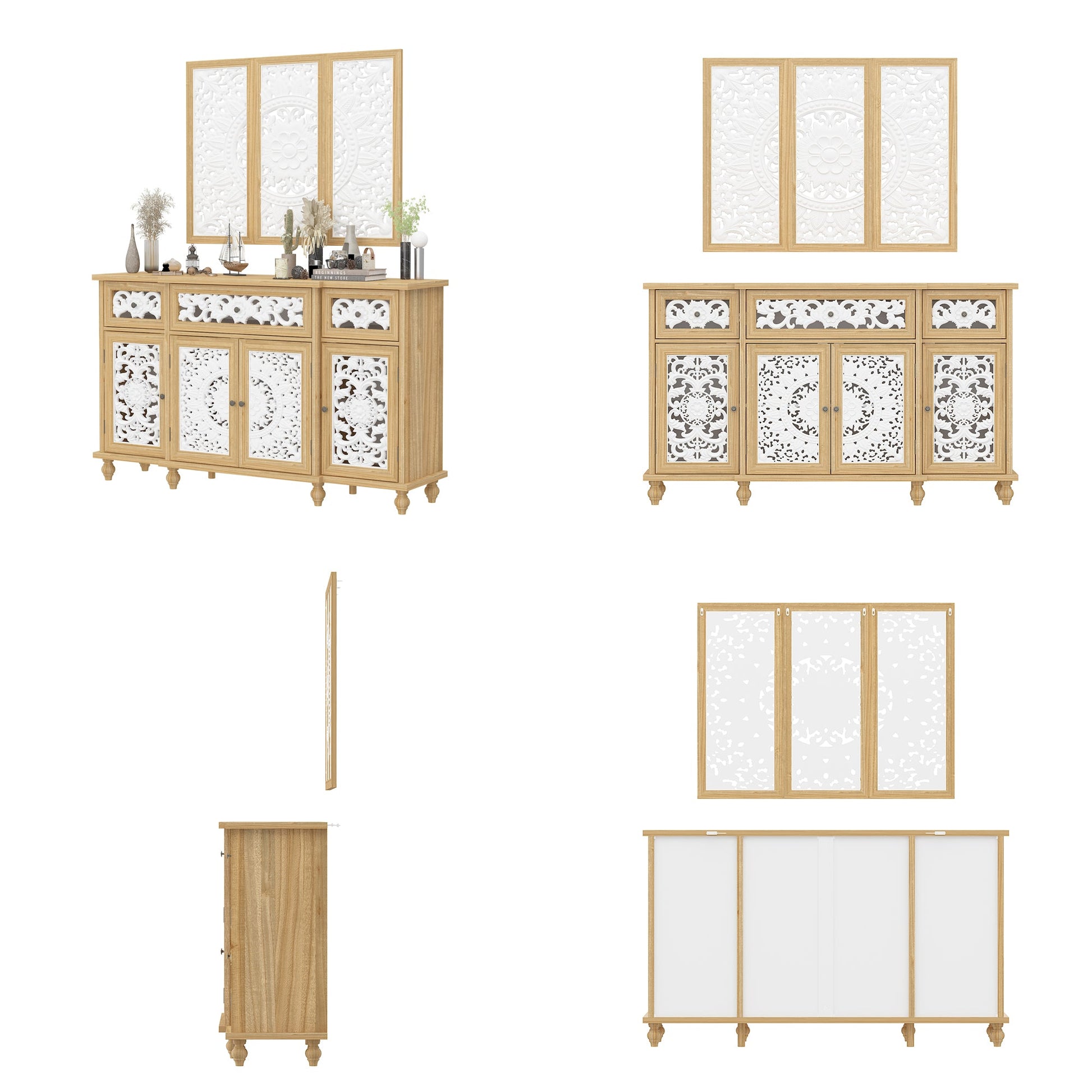 Le buffet de 150 cm de large avec décorations murales est un superbe mélange de savoir-faire classique et de charme vintage. Ce magnifique buffet, d'une hauteur de 90 cm, présente une riche variété de motifs floraux sculptés sur ses tiroirs et ses portes, apportant profondeur et caractère à tout intérieur traditionnel ou de style campagne française.