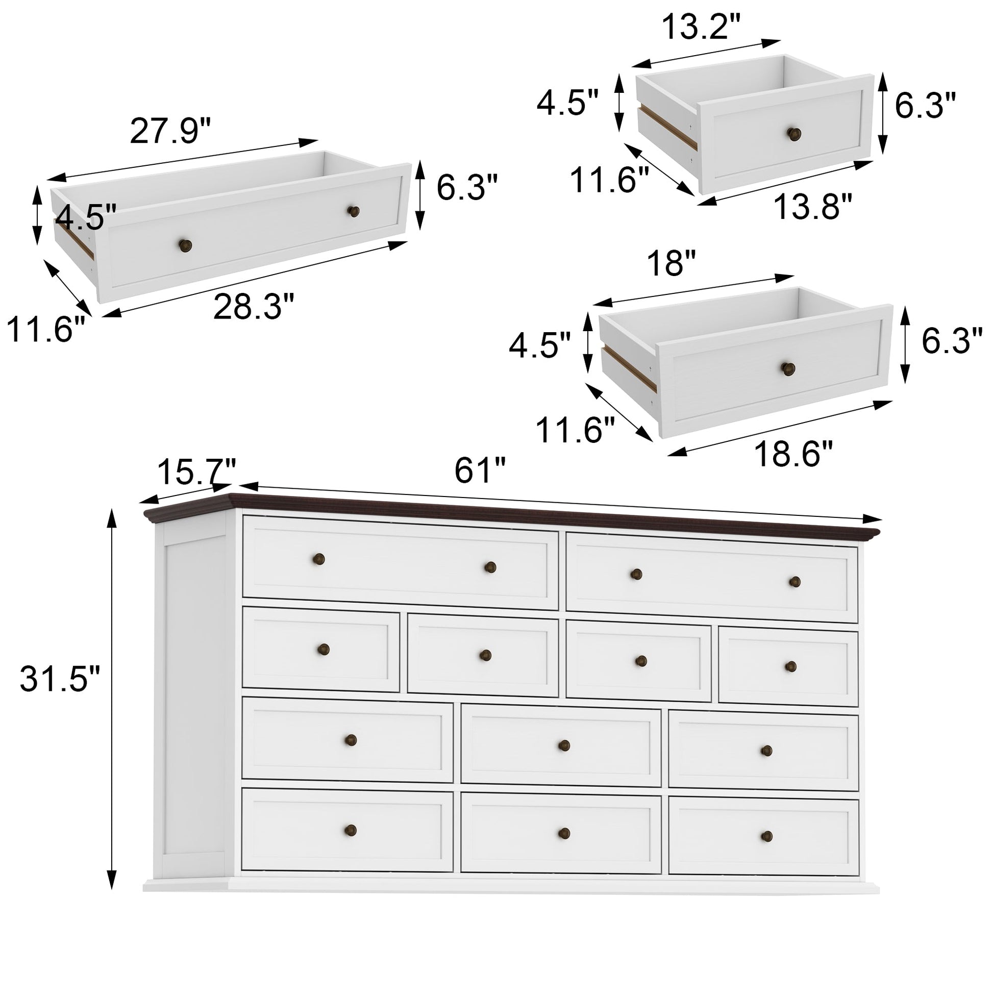 Cette commode sophistiquée à 12 tiroirs est non seulement impressionnante, mais elle offre également un vaste espace de rangement idéal pour vos vêtements, bijoux, produits de beauté et bien plus encore. Apportez élégance et praticité à votre intérieur, que ce soit dans votre chambre, votre salon ou votre séjour. Son design classique et sa robustesse égayeront votre maison tout en contribuant à la garder propre et bien rangée.