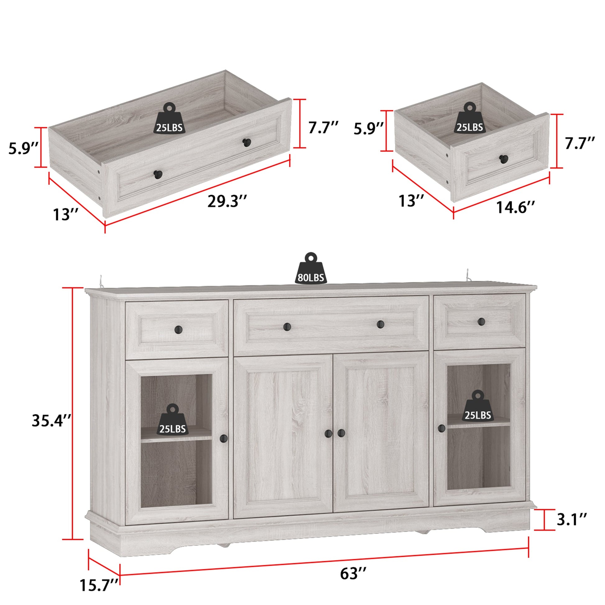 Buffet de 63 pouces avec 3 tiroirs et 4 portes
