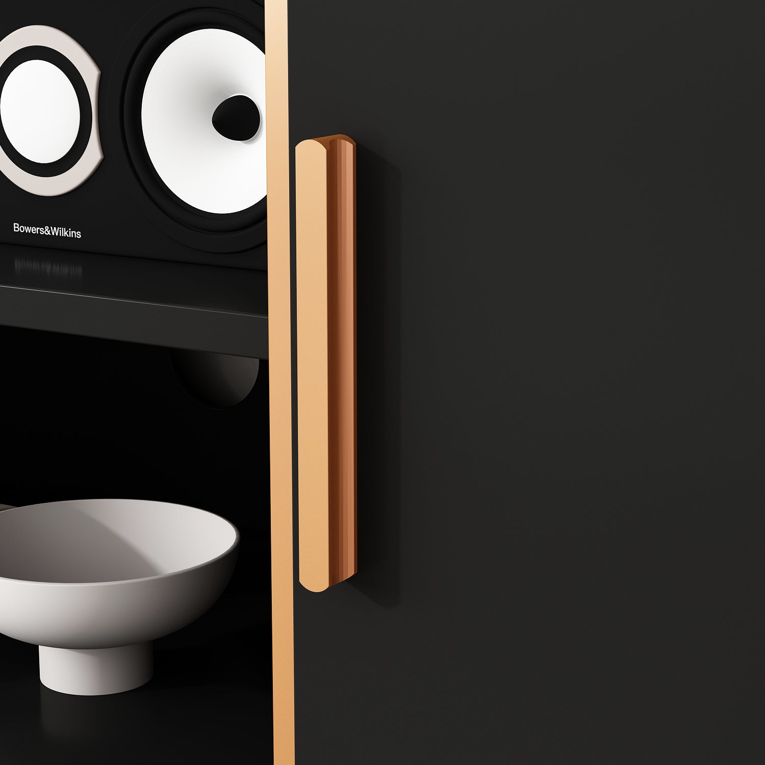Ce meuble TV noir de 180 cm de large, au design élégant et parfaitement fonctionnel, allie style et robustesse. Sa structure stable lui confère une allure moderne et pratique. Les portes des placards latéraux, ornées de poignées dorées, ajoutent une touche de luxe à votre salon. Les deux étagères centrales et le socle doré offrent un espace de rangement généreux tout en assurant la stabilité et l'esthétique du meuble. Ce meuble TV noir répond à vos besoins de rangement et d'exposition, et embellit votre intérieur grâce à son design raffiné et sa qualité exceptionnelle.