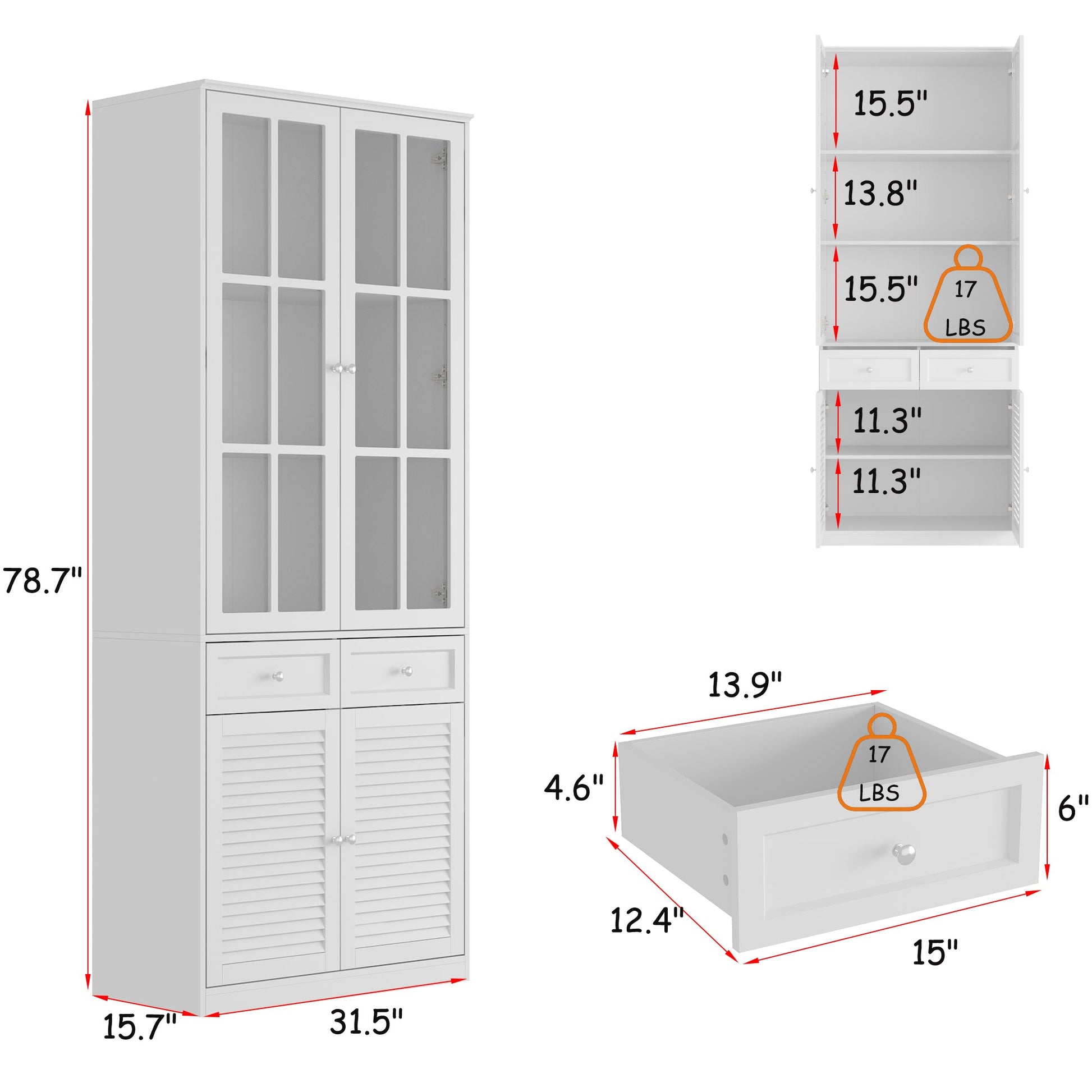 Bibliothèque avec portes vitrées et tiroirs, 78,7 po H x 31,5 po L