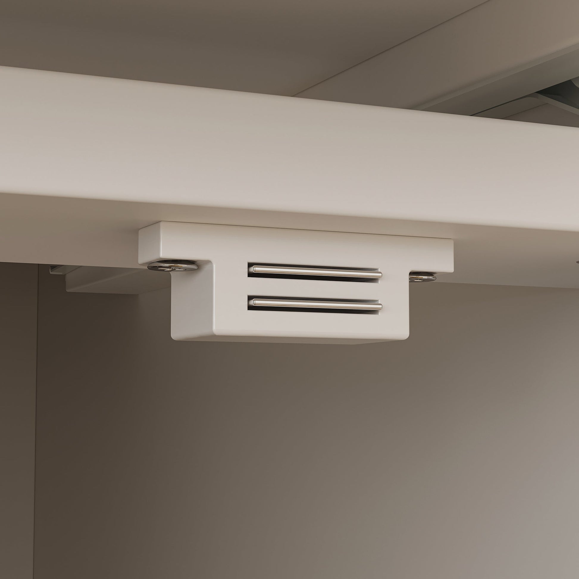 Apportez une touche de charme rustique et d'élégance fonctionnelle à votre bureau à domicile avec ce bureau et sa bibliothèque de style campagnard. Arborant une finition blanche éclatante contrastant avec des poignées et un plateau noirs, ce meuble allie le charme de la campagne à la praticité moderne. La bibliothèque supérieure comprend sept compartiments de rangement ouverts et fermés, dont deux armoires vitrées, parfaits pour ranger avec style livres, objets de décoration ou fournitures. Un spacieux plateau noir de 147 cm de large offre un espace généreux pour écrans, ordinateurs portables et autres outils de travail. Le système de gestion des câbles intégré vous permet de désencombrer votre bureau, tandis que les prises électriques intégrées (deux prises secteur, un port USB et un port USB-C) garantissent que vos appareils sont toujours chargés et prêts à l'emploi. Cinq tiroirs à glissières fluides, dont un tiroir à dossiers suspendus et une armoire fermée, offrent un espace de rangement généreux pour vos documents et fournitures de bureau quotidiennes. Conçu pour une sécurité optimale, ce bureau est équipé d'un système anti-basculement pour une stabilité accrue.