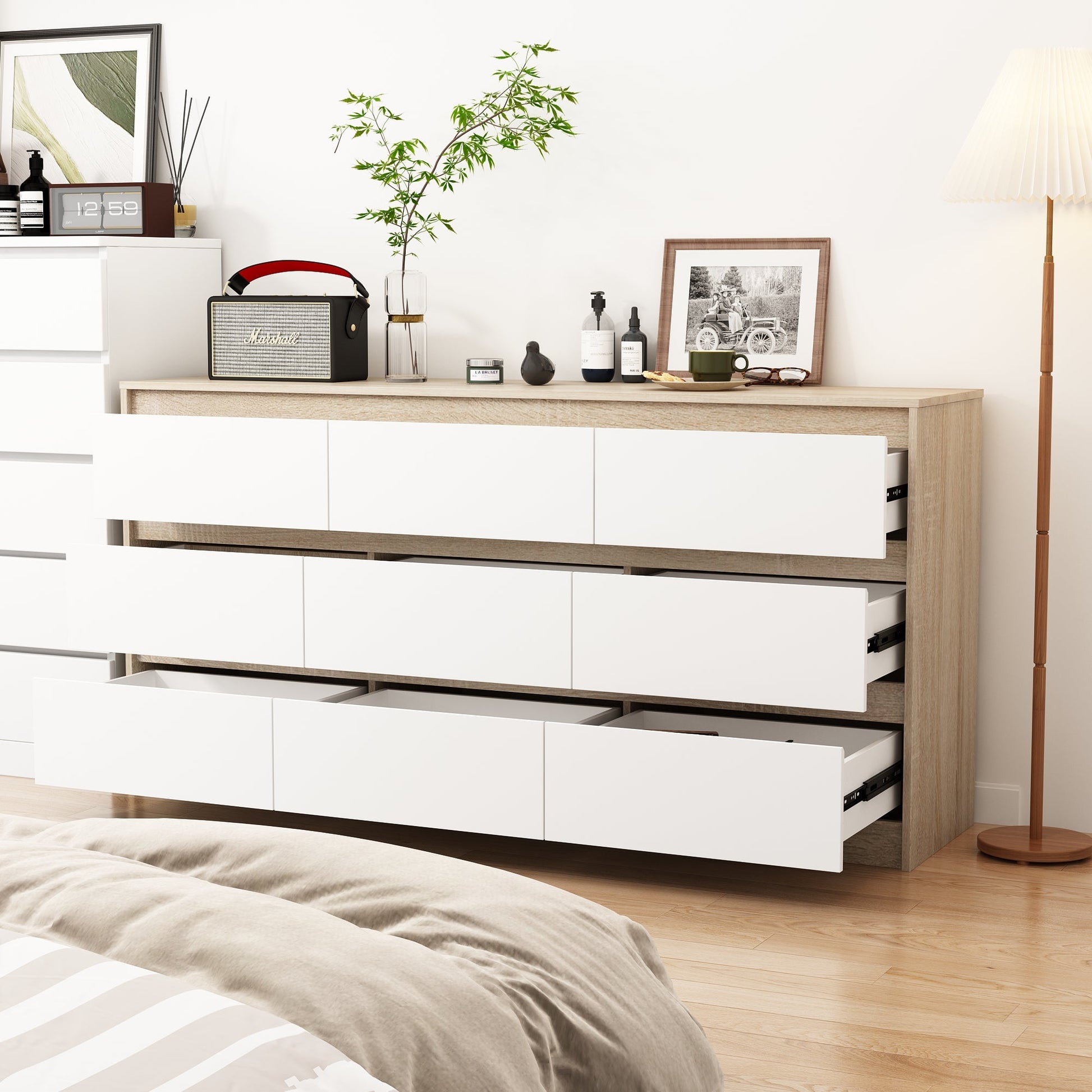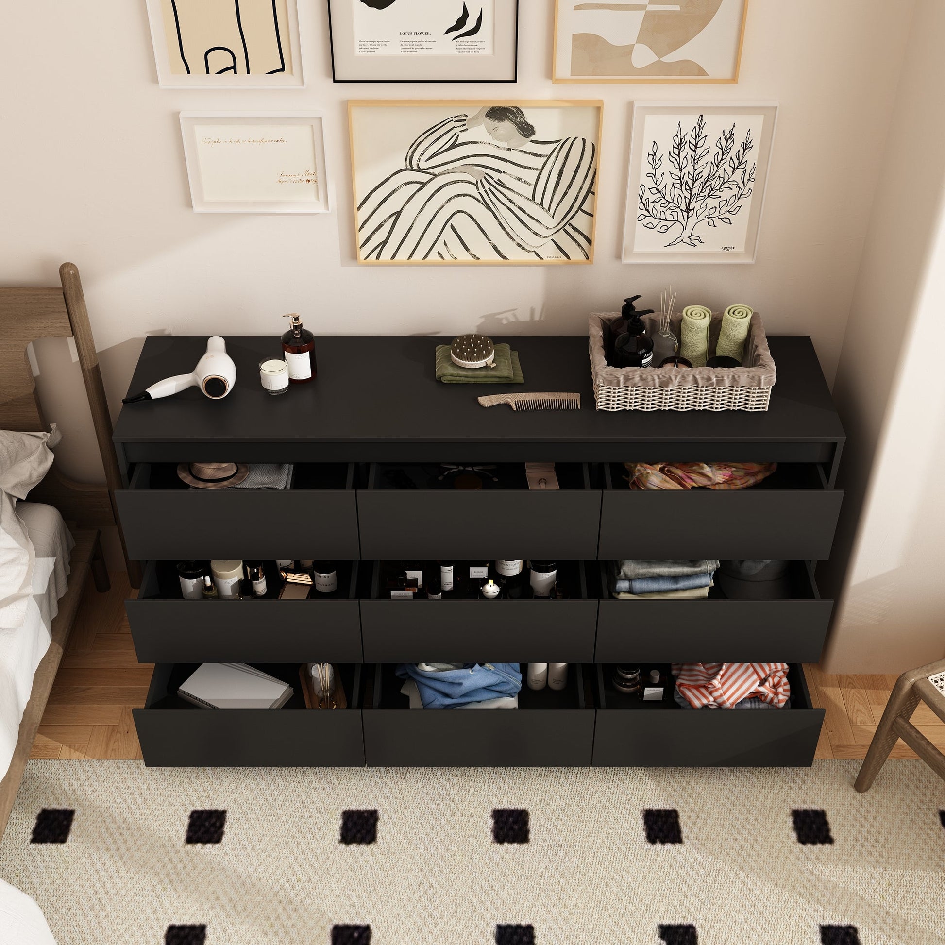 Buffet large à trois tiroirs avec rangement et 9 tiroirs