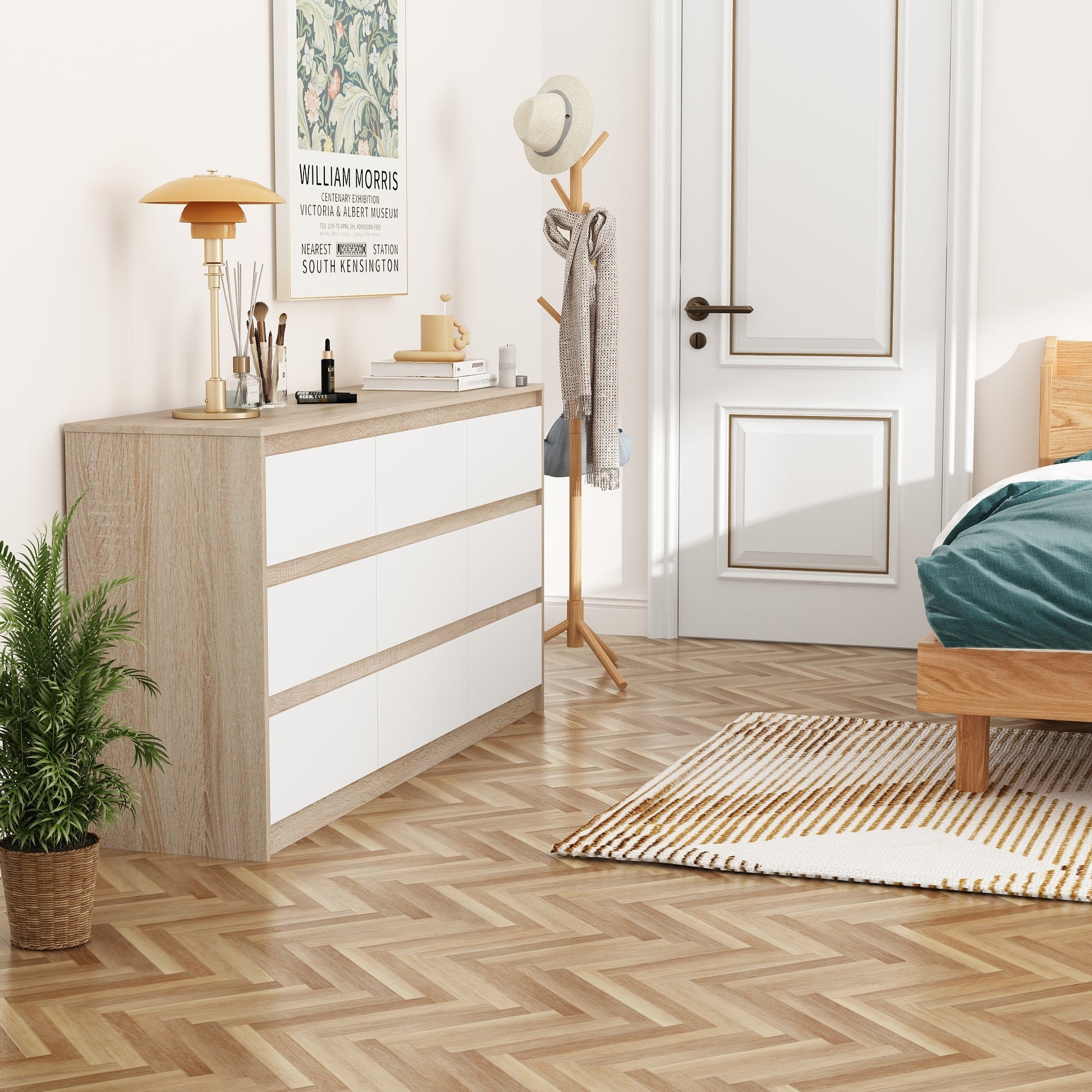 Ce buffet de rangement simple possède non seulement de grands tiroirs, mais il est aussi très esthétique. Il peut être placé contre un mur comme meuble TV ou comme meuble de rangement dans le salon. Le matériau principal est un panneau écologique. Ses 9 tiroirs sont conçus pour un rangement compartimenté optimal. Ils sont équipés de glissières métalliques silencieuses et robustes.