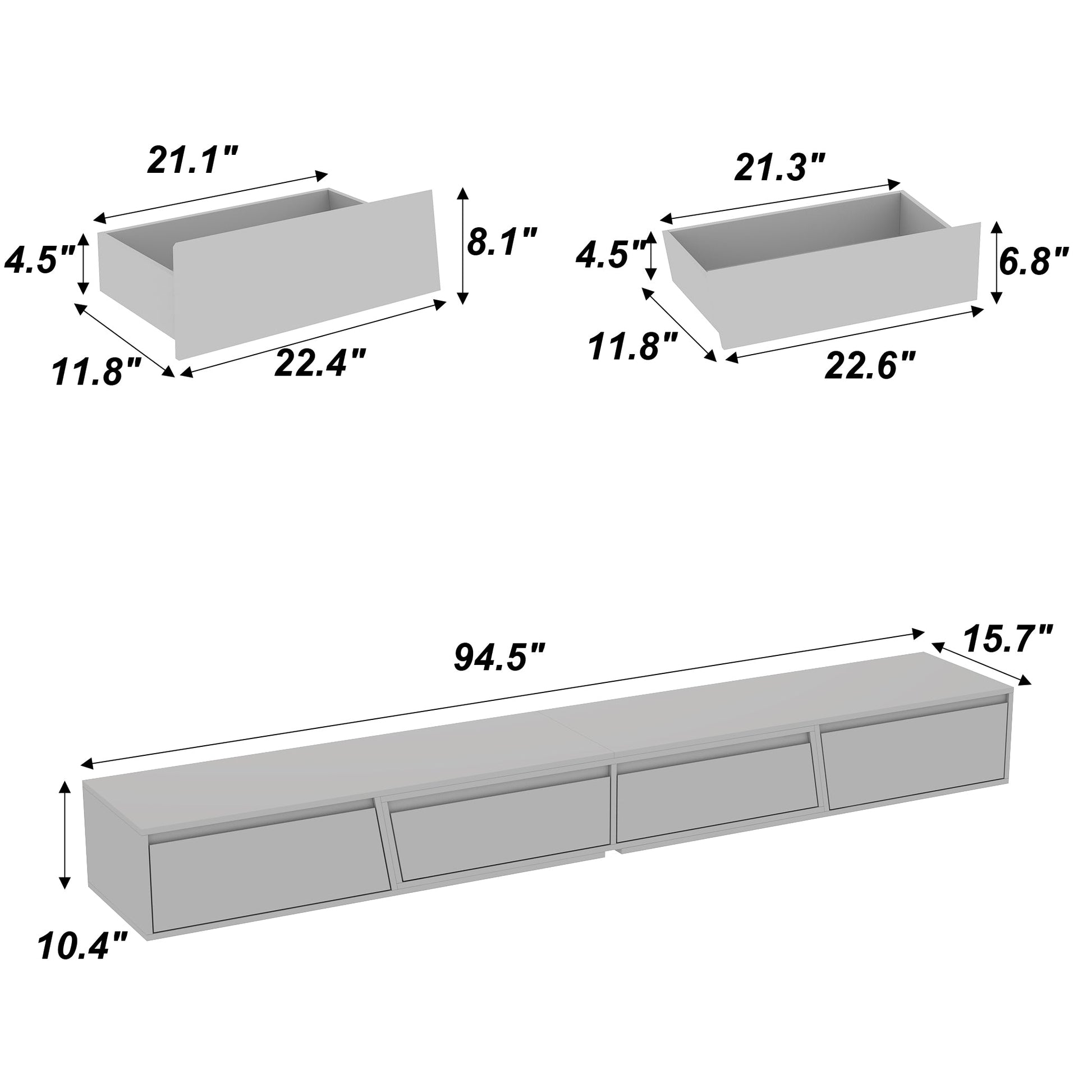 Console multimédia à 4 tiroirs de 94,5 pouces de large