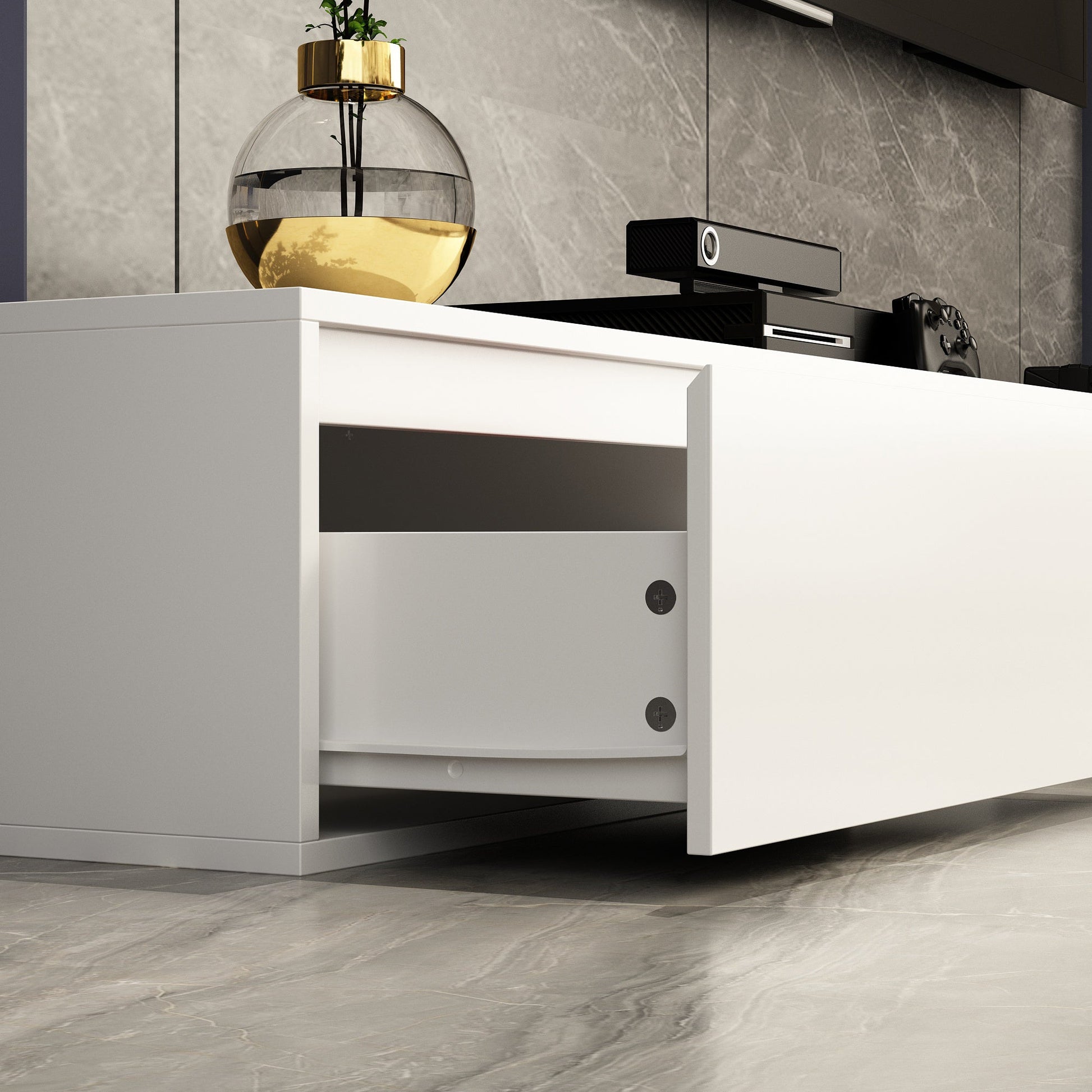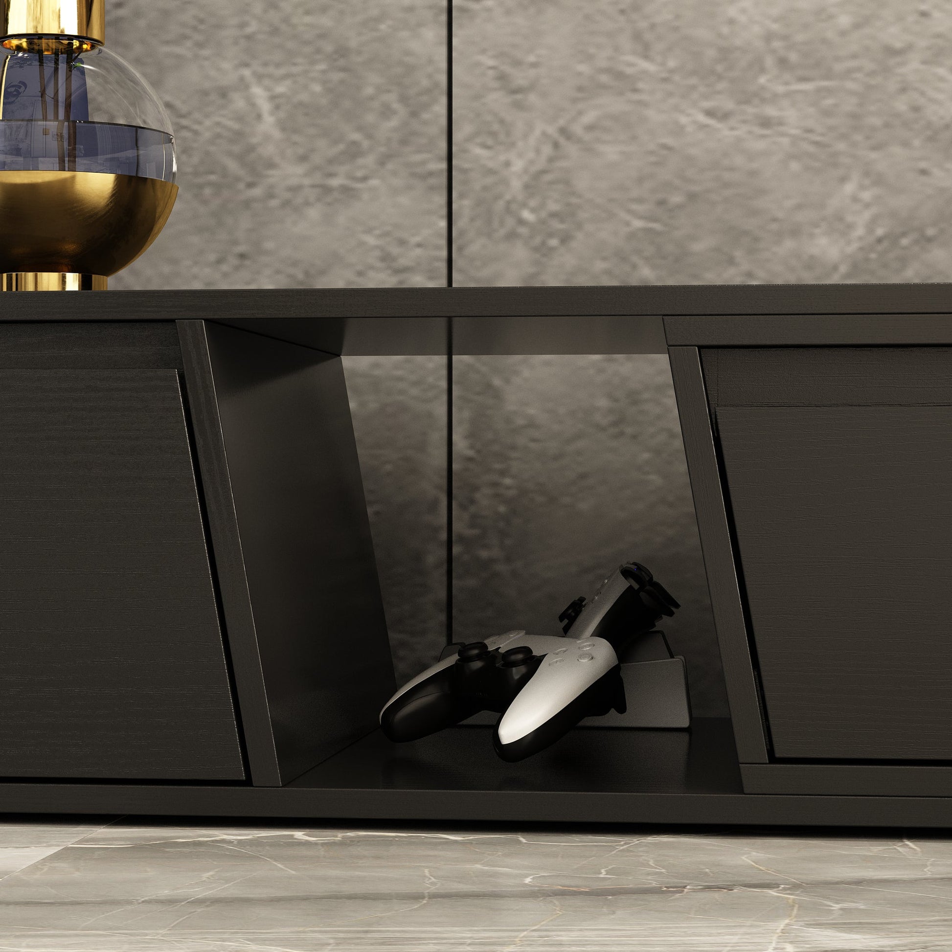 Ne faites aucun compromis entre style et fonctionnalité : optez pour le meilleur des deux mondes avec ce meuble TV polyvalent. Grâce à sa superbe finition, ce meuble multimédia apporte une touche contemporaine à votre espace tout en offrant un grand espace de rangement pour tous vos appareils multimédias. Son design élégant offre suffisamment de place pour vos appareils, consoles de jeux et bien plus encore.