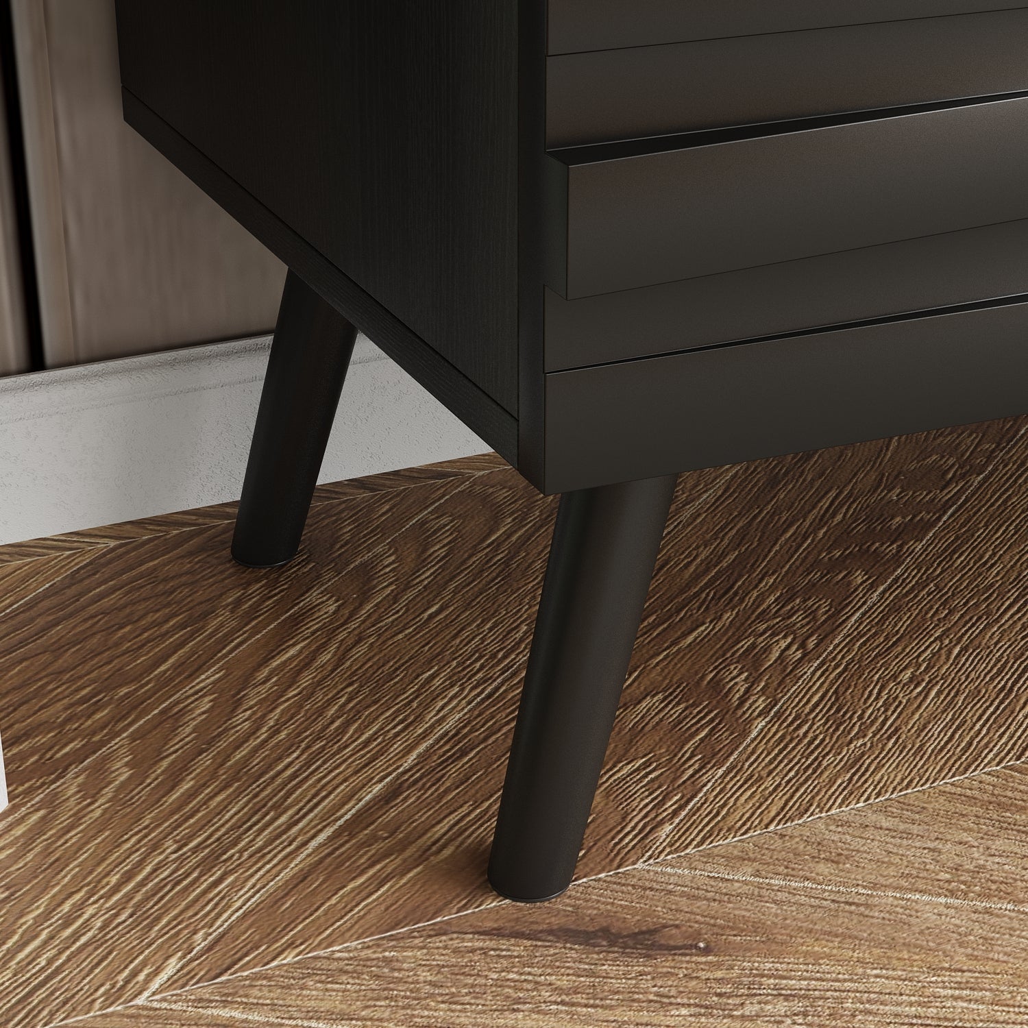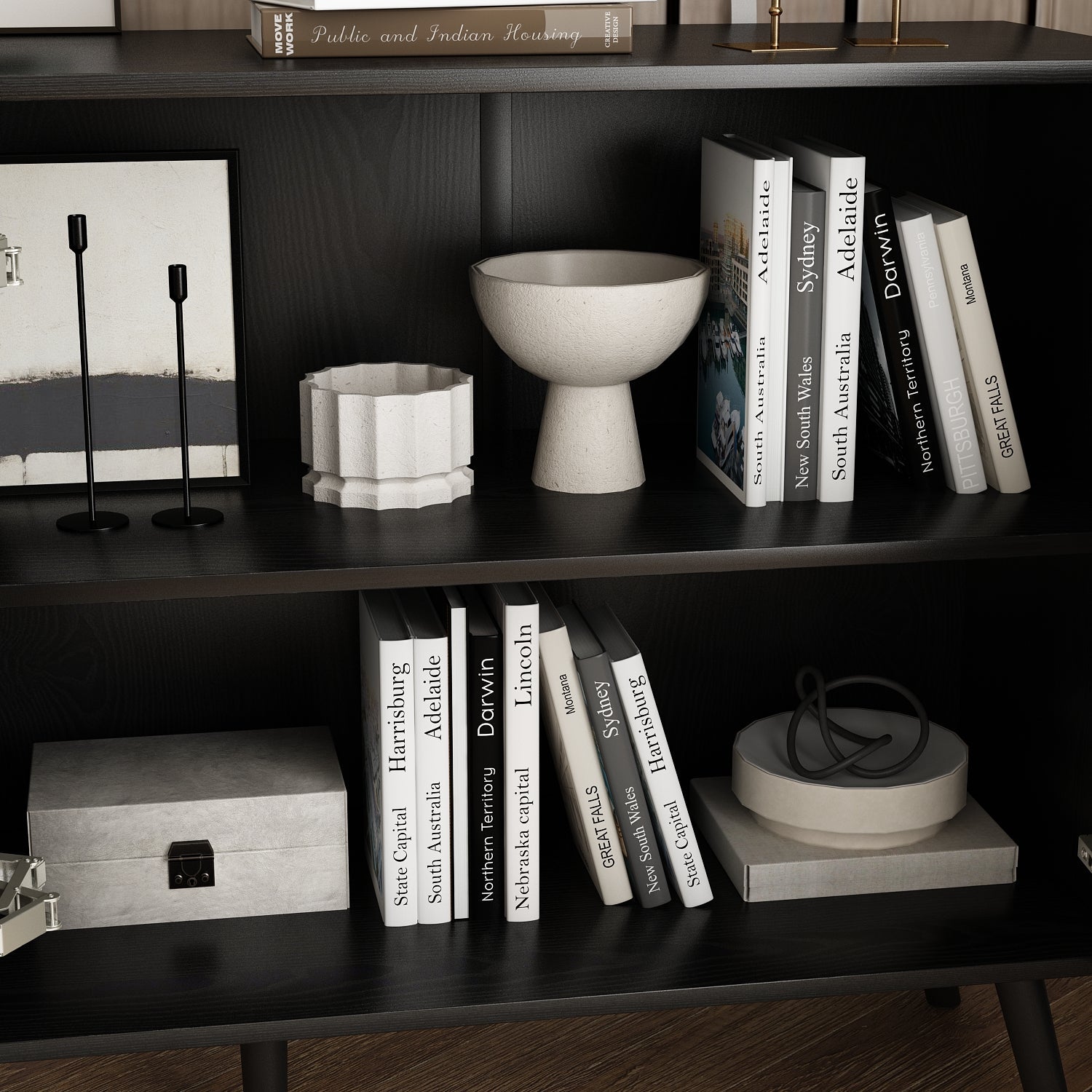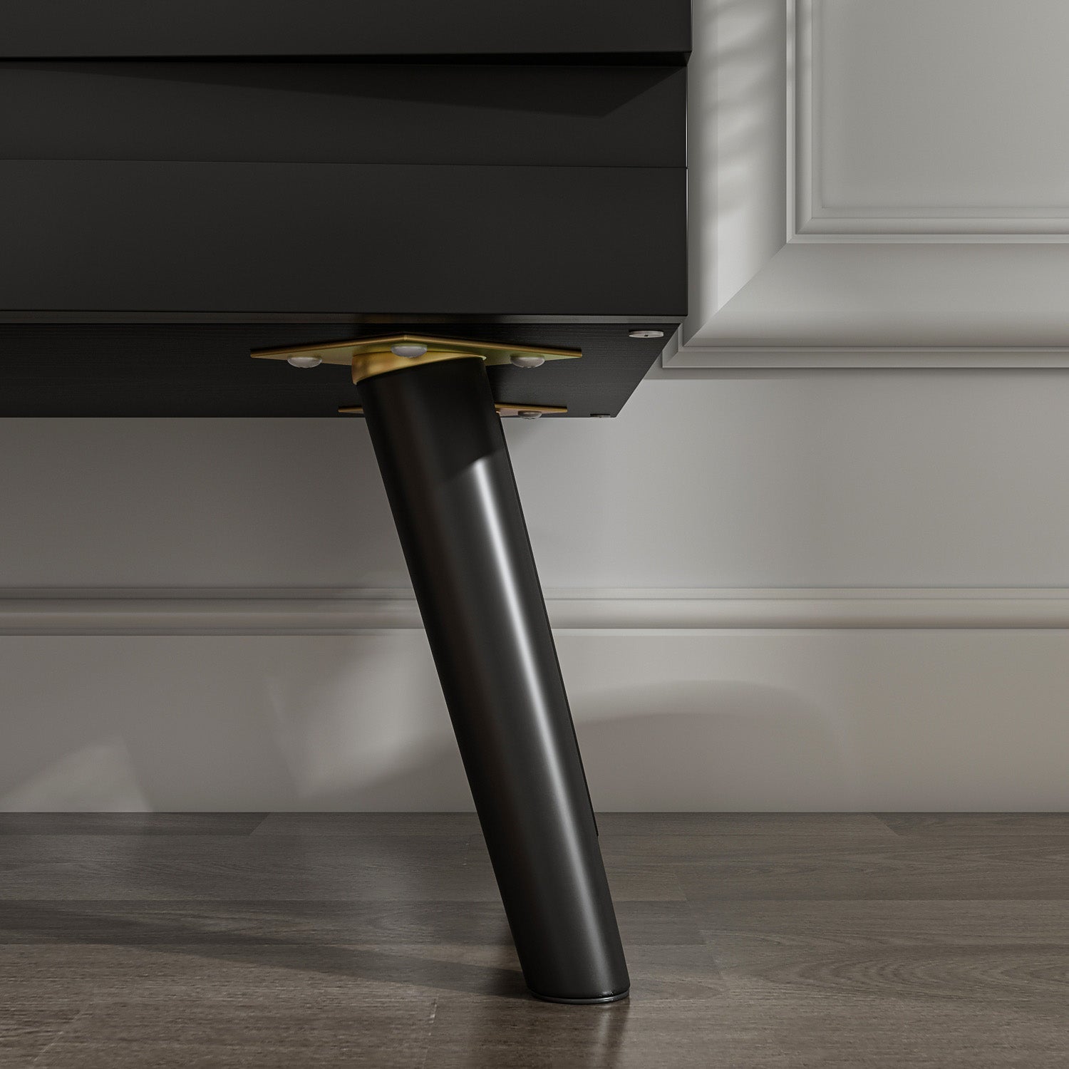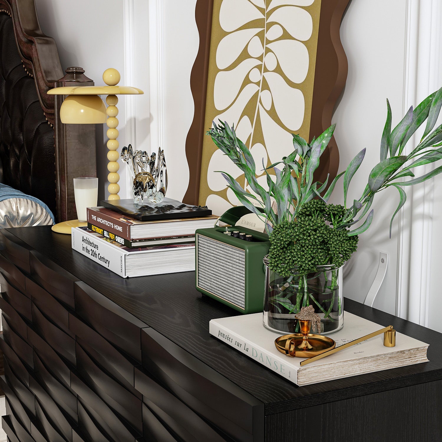 Ce meuble à quatre portes est doté d'un spacieux plan de travail offrant un vaste espace de travail. Que vous organisiez vos vêtements dans votre chambre ou que vous ayez besoin d'un endroit pour exposer votre collection, ce plan de travail répondra à tous vos besoins. Les portes noires texturées et gaufrées confèrent au meuble un style unique et raffiné. Ce design élégant apportera une touche de modernité à votre intérieur et s'harmonisera avec différents styles de décoration.