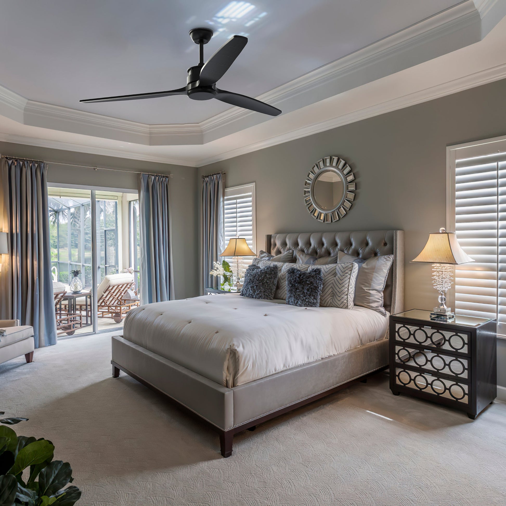Ventilateur de plafond d'extérieur avec télécommande, moteur CC, 6 vitesses et 2 tiges de suspension