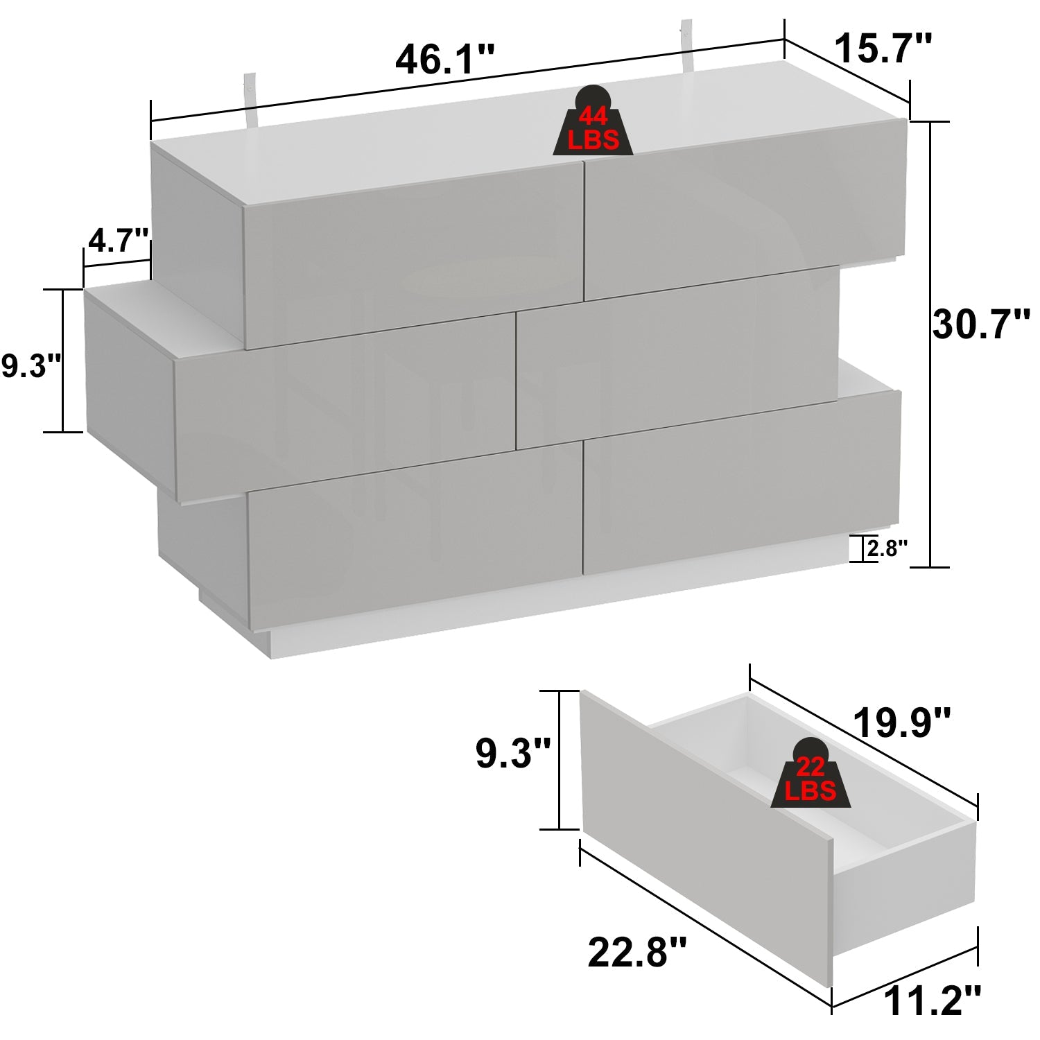 Commode double laquée brillante, buffet à 6 tiroirs pour salon