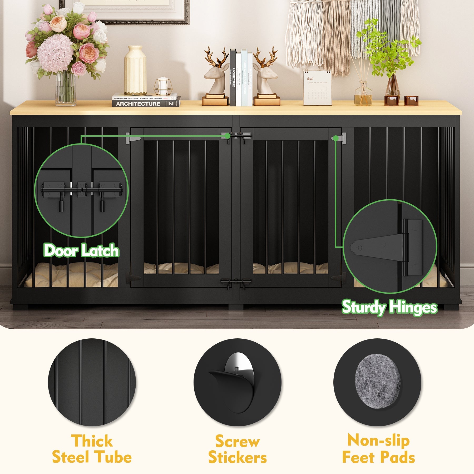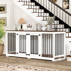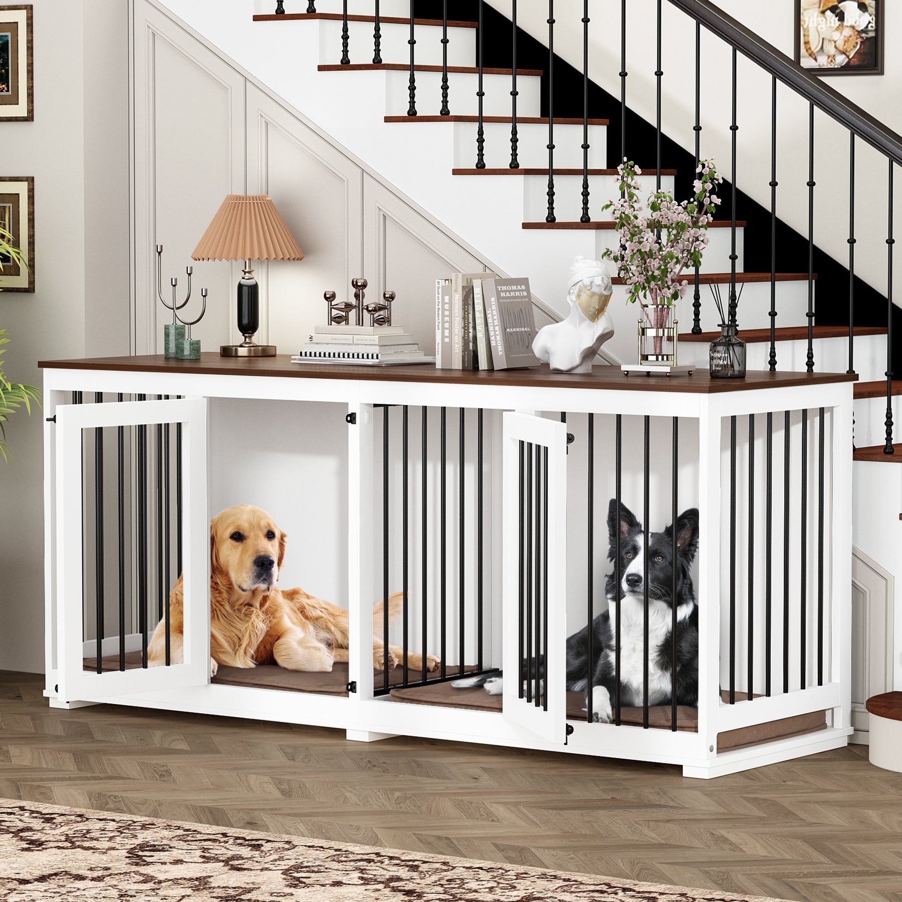 Améliorez l'espace de vie de votre animal avec le meuble cage pour grand chien FUFU&GAGA. Cette cage design d'intérieur est idéale pour les familles avec un grand chien ou deux chiens de taille moyenne. Fabriquée en acier de haute qualité et en panneaux de particules de qualité P2, elle garantit sécurité et style, et s'intègre parfaitement à votre décoration intérieure.