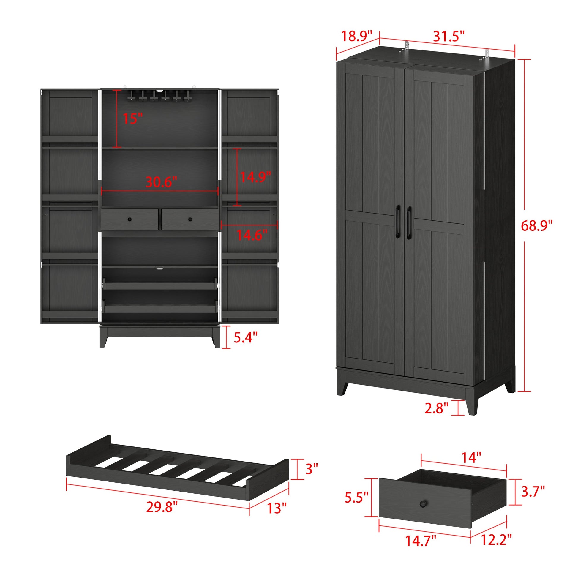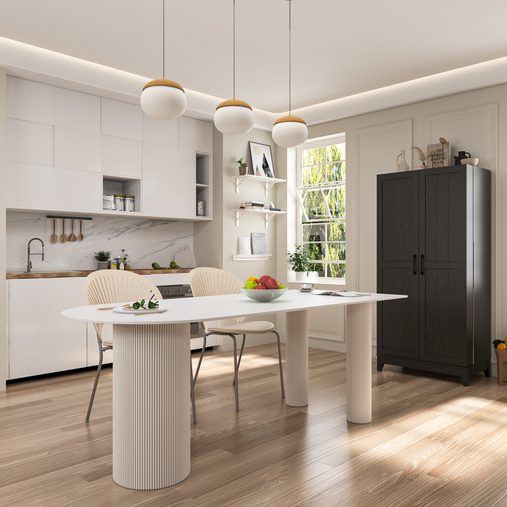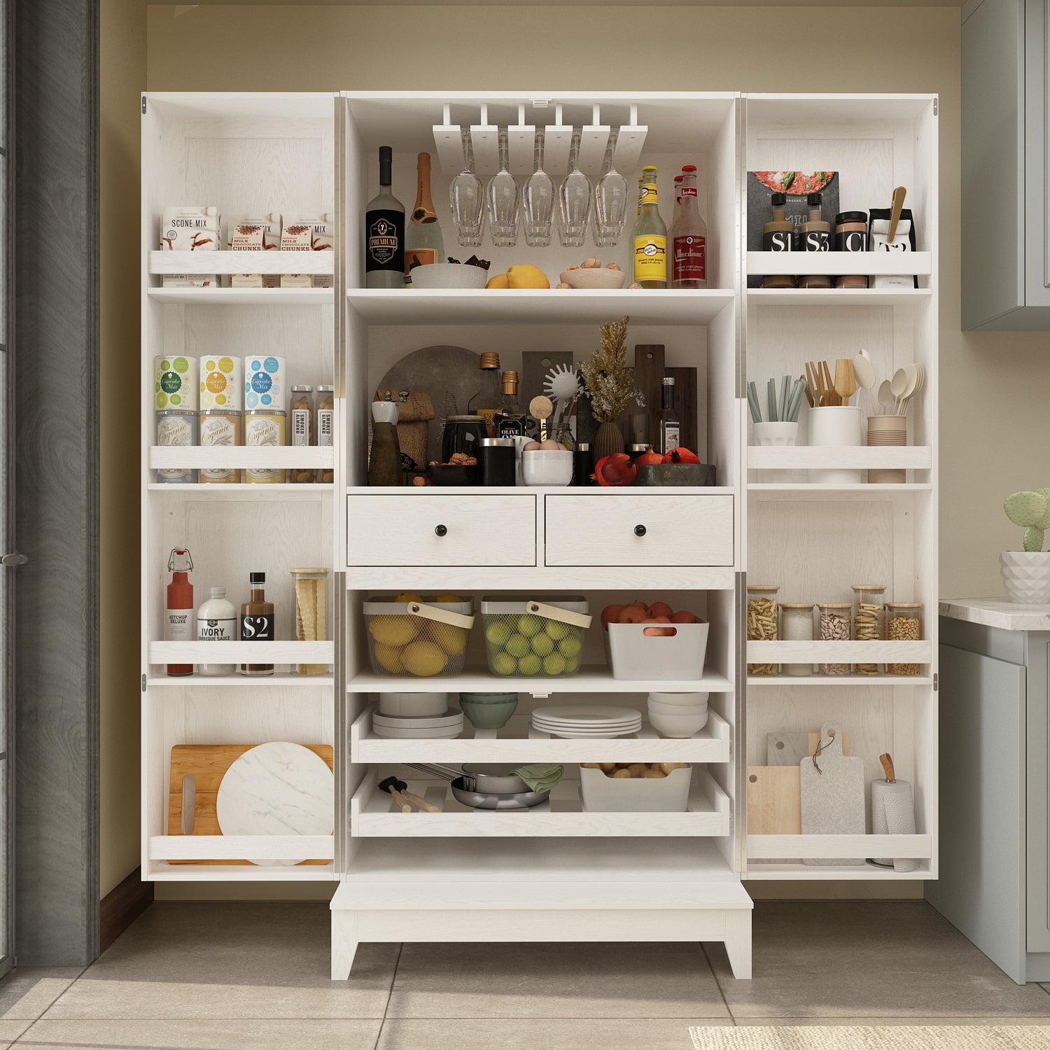 Découvrez notre élégant meuble de cuisine moderne, doté de deux tiroirs spacieux et de quatre étagères derrière chaque porte. Une fois ouvert, vous trouverez trois étagères supplémentaires et un porte-verres à vin pratique. Sa finition blanche s'harmonise parfaitement avec tous les styles de cuisine.