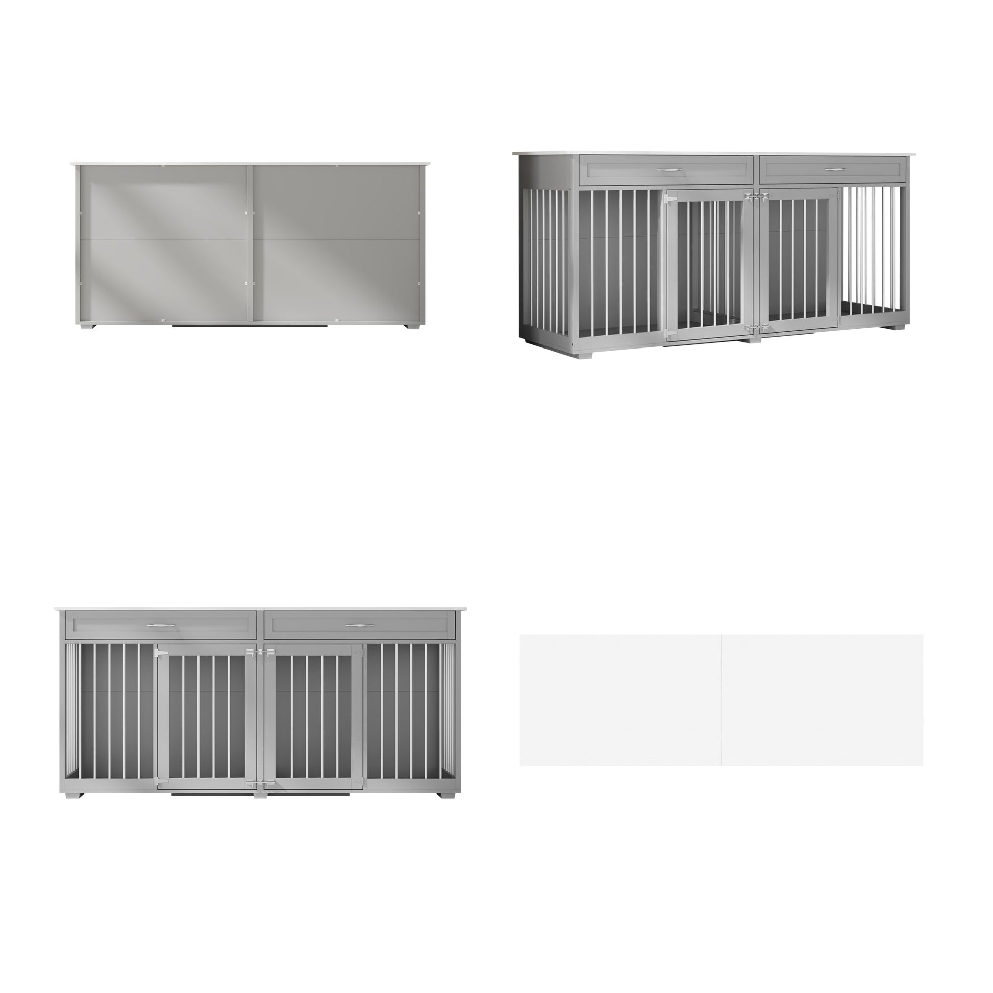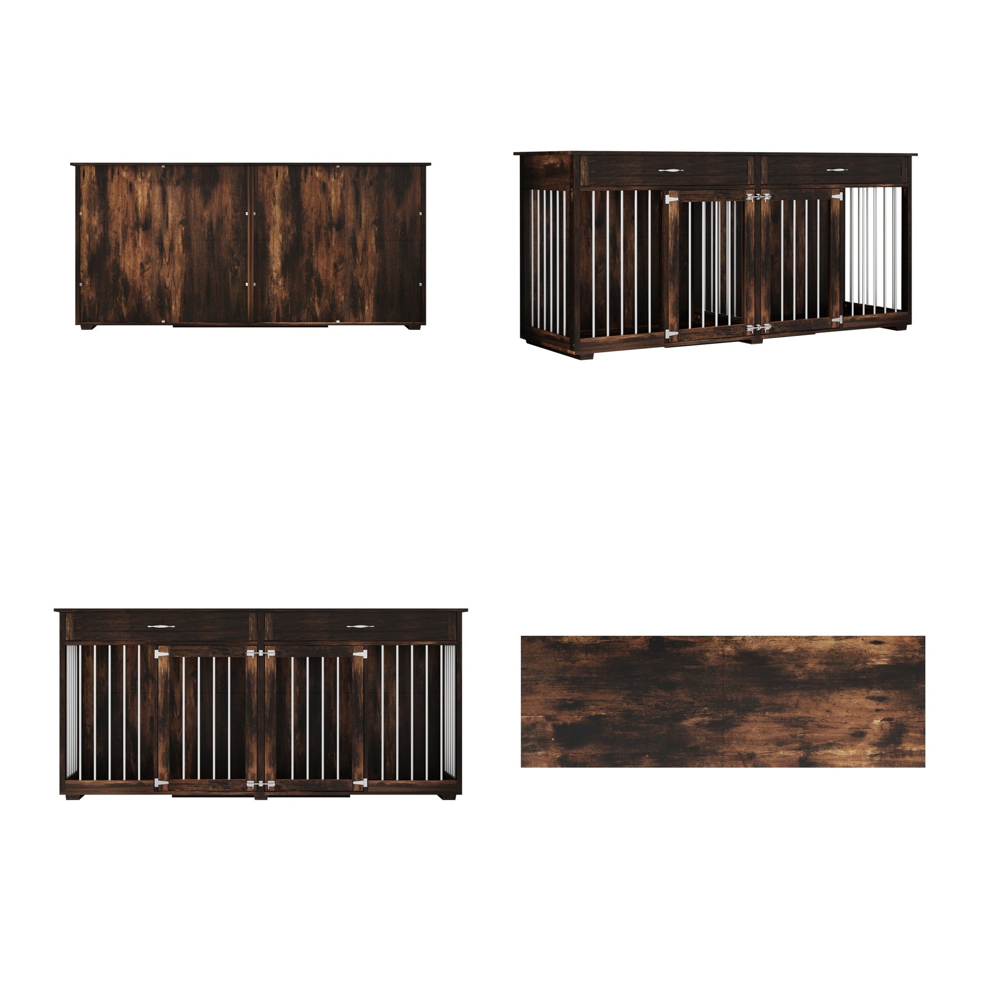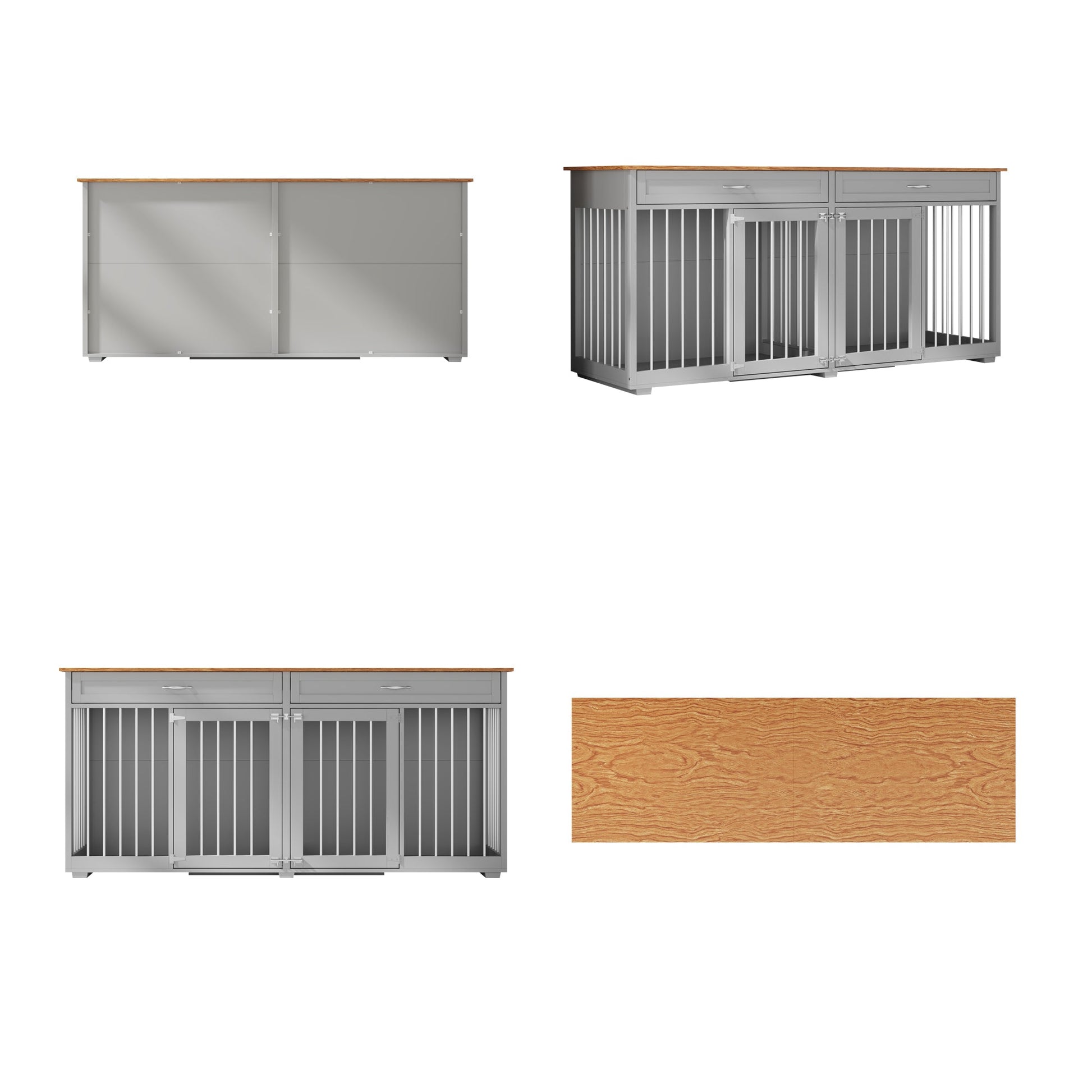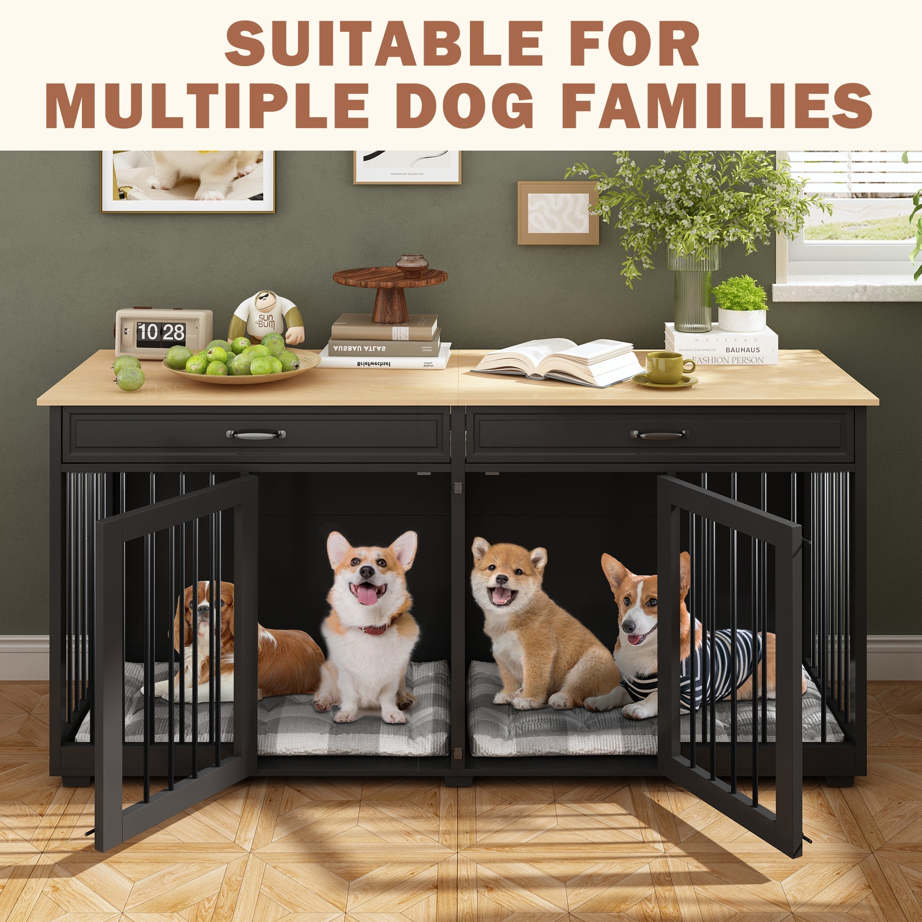 Grande cage en bois pour chien avec 2 tiroirs et séparateurs
