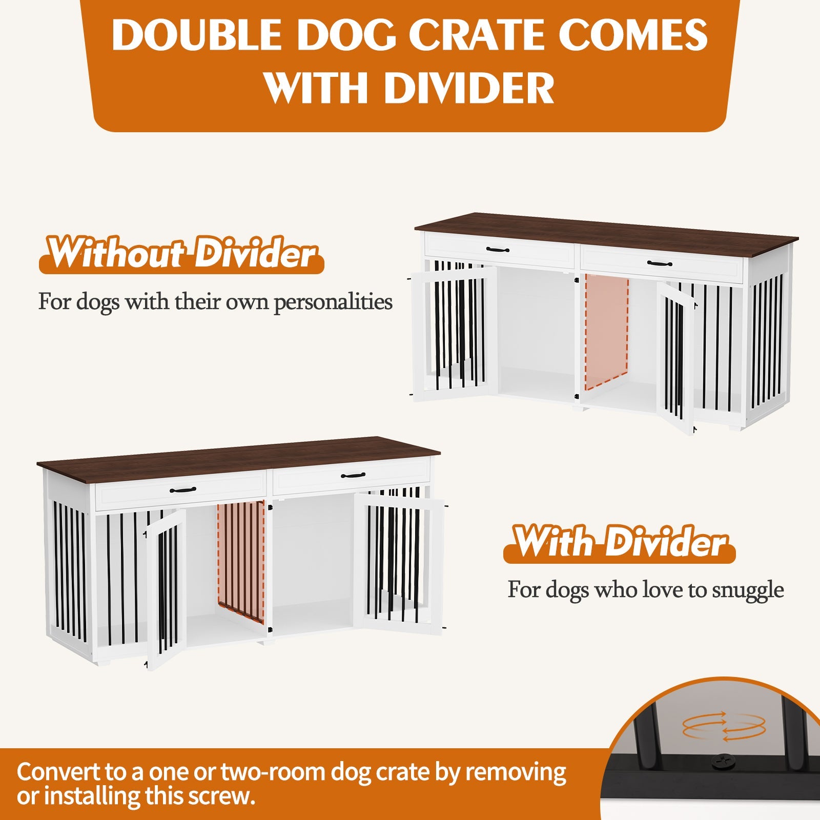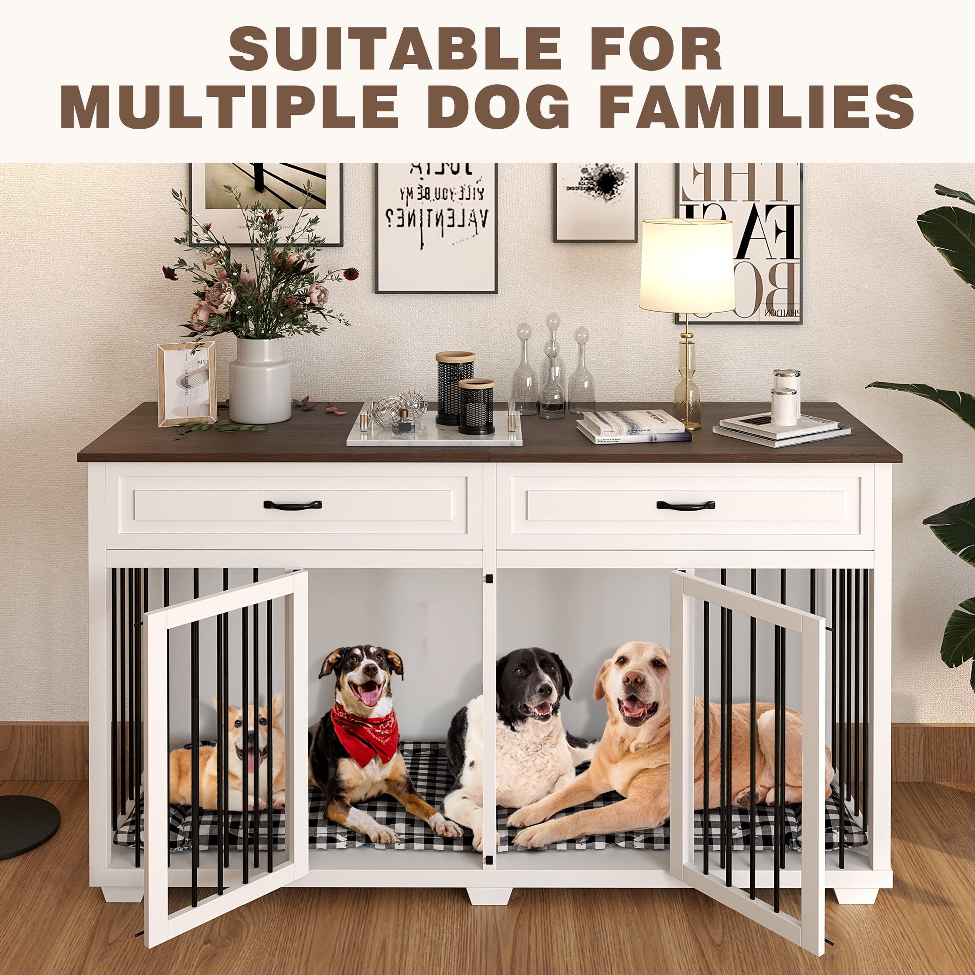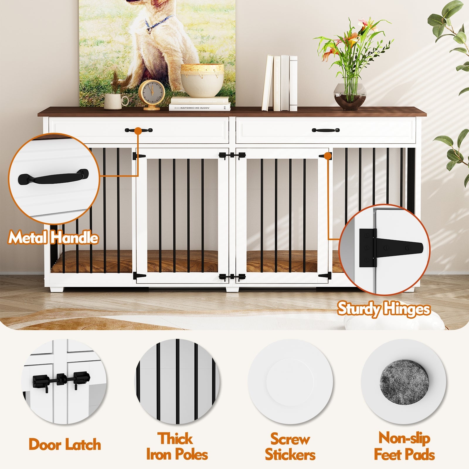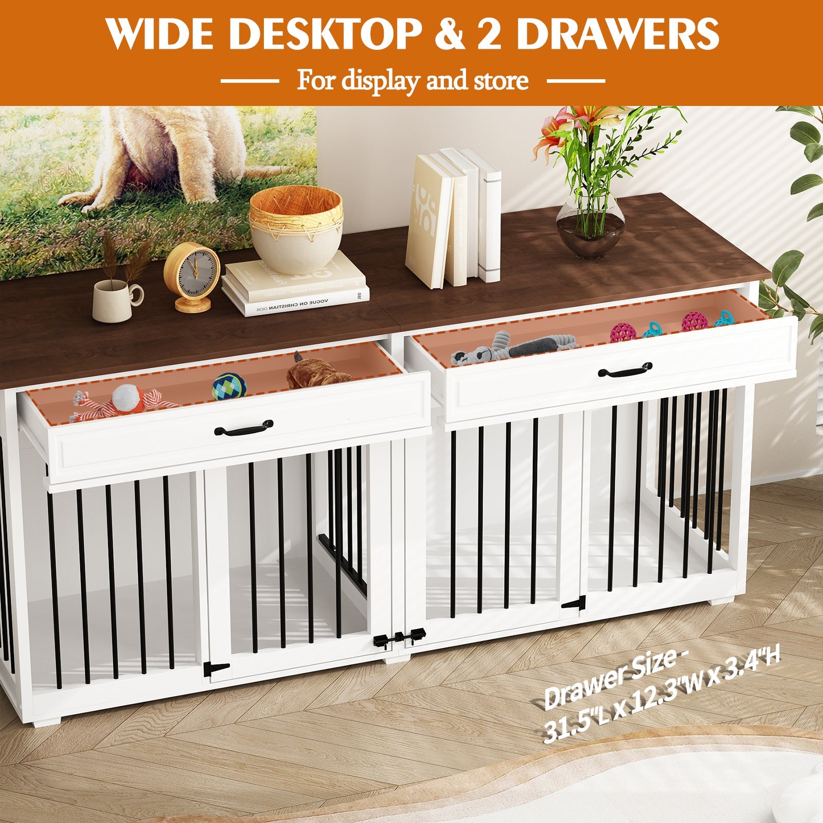 Grande cage en bois pour chien avec 2 tiroirs et séparateurs