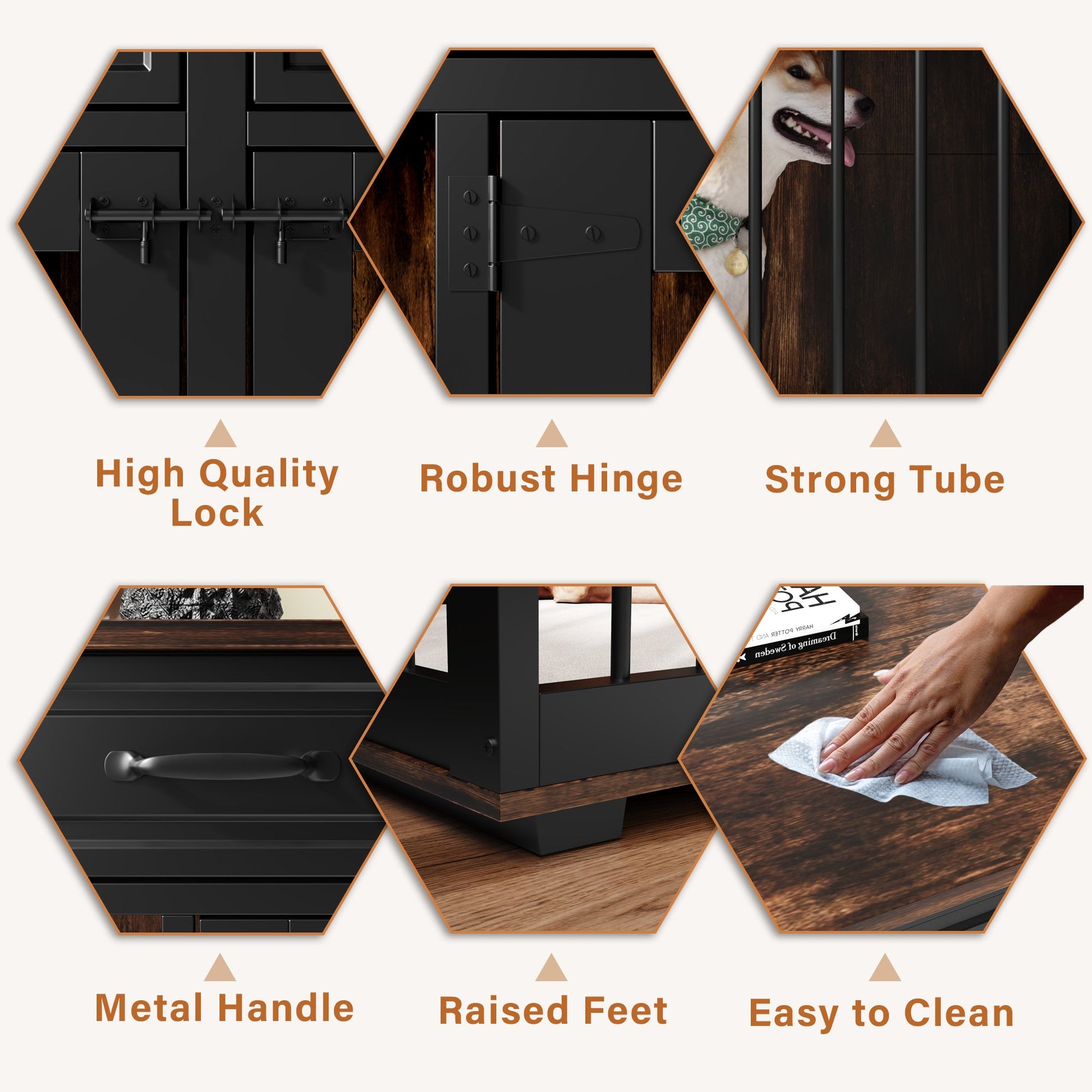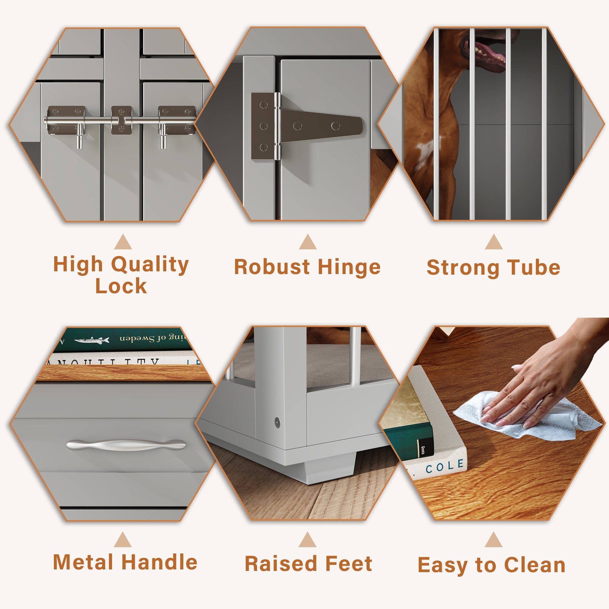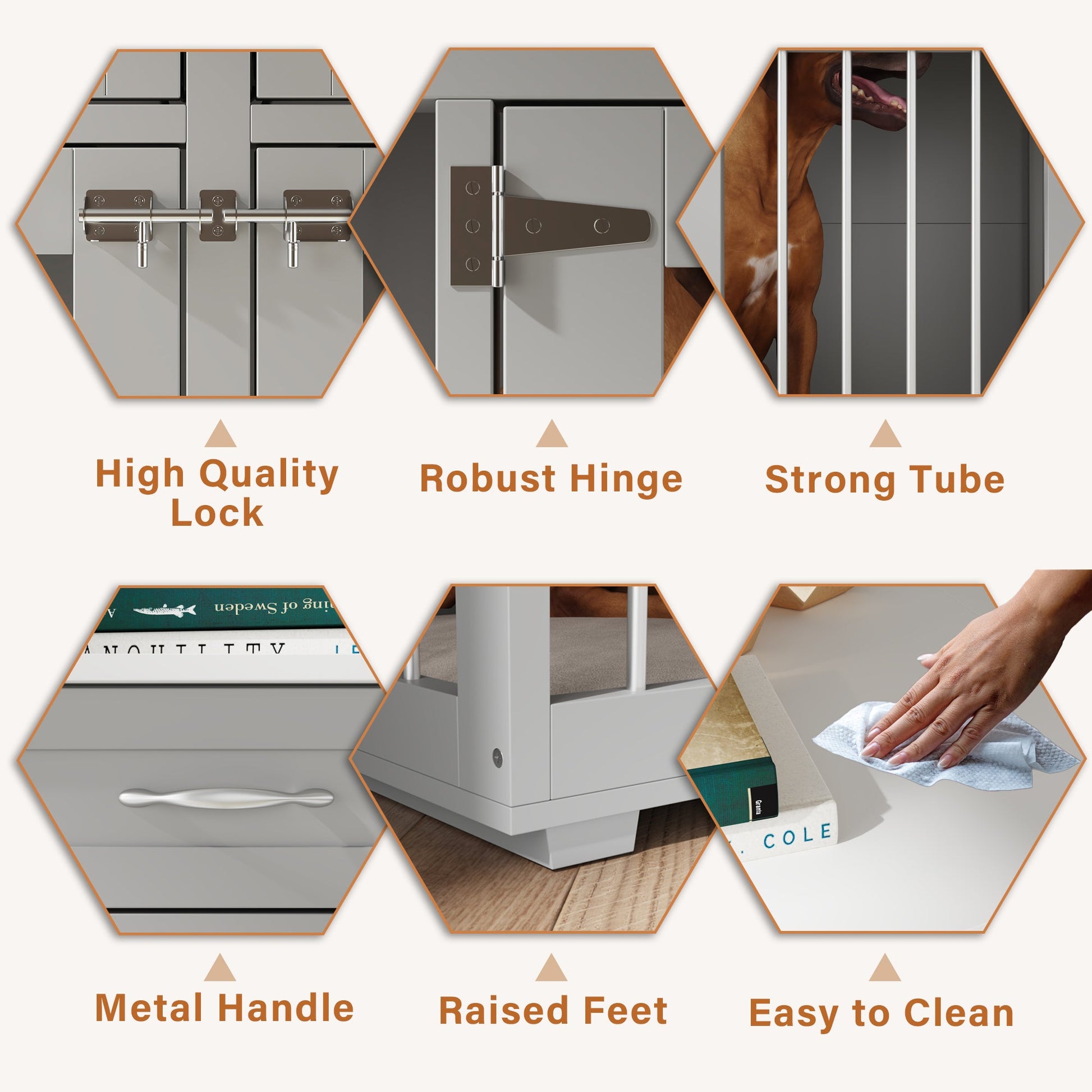 Offrez à vos animaux de compagnie un espace élégant et fonctionnel avec le grand meuble-cage en bois pour chien FUFU&GAGA. Ce chenil polyvalent comprend deux compartiments spacieux, de nombreux rangements et un design qui s'harmonise avec tous les intérieurs, garantissant à vos compagnons à quatre pattes un lieu de repos confortable et sécurisé.