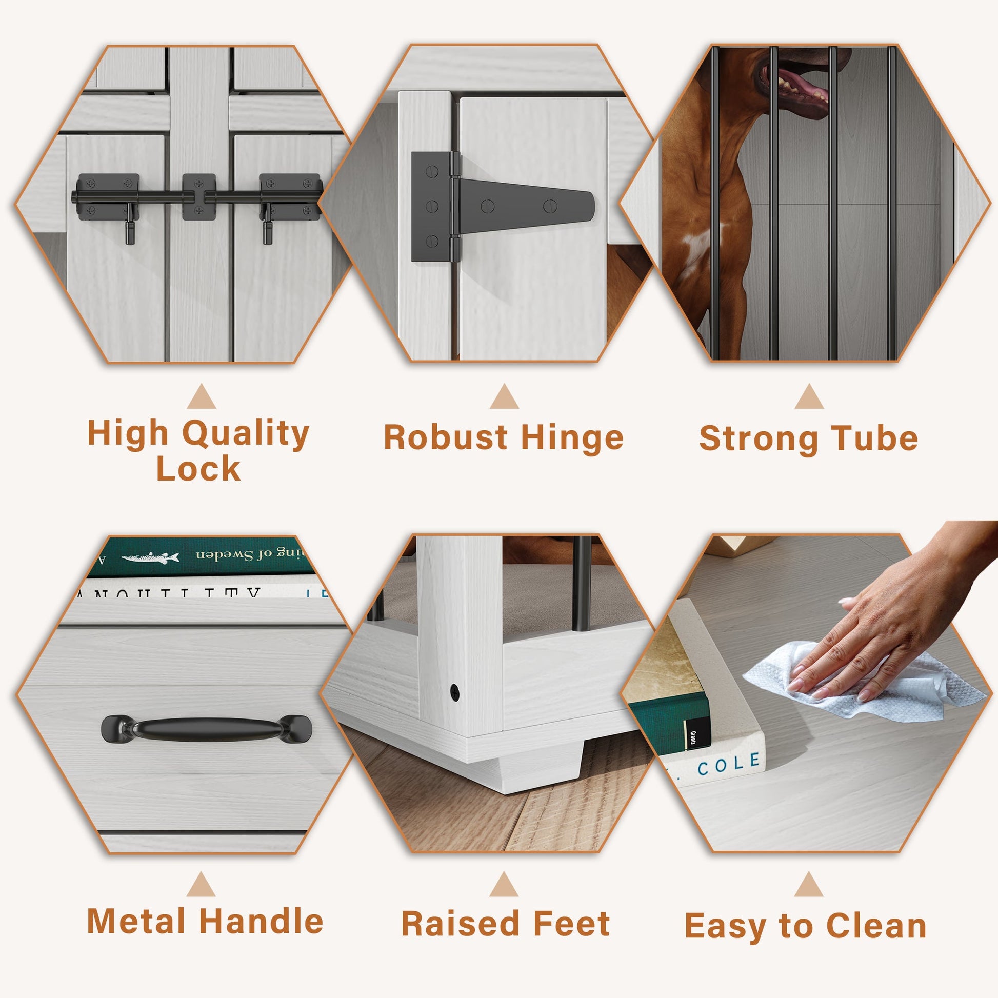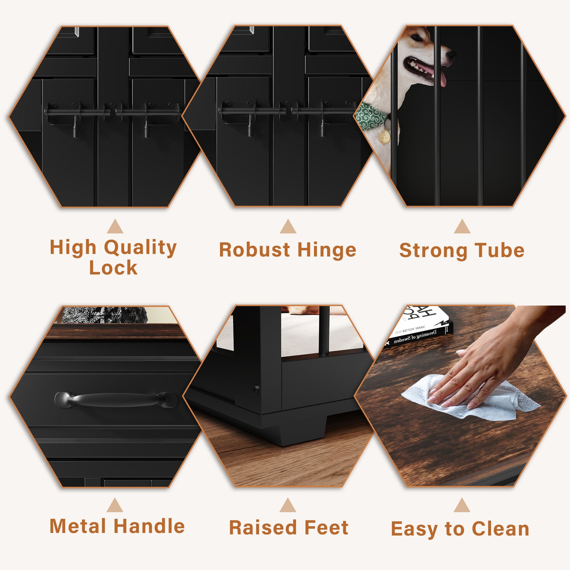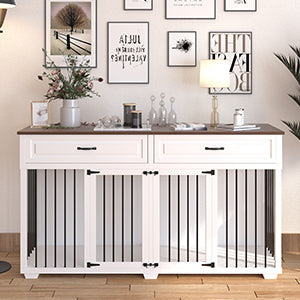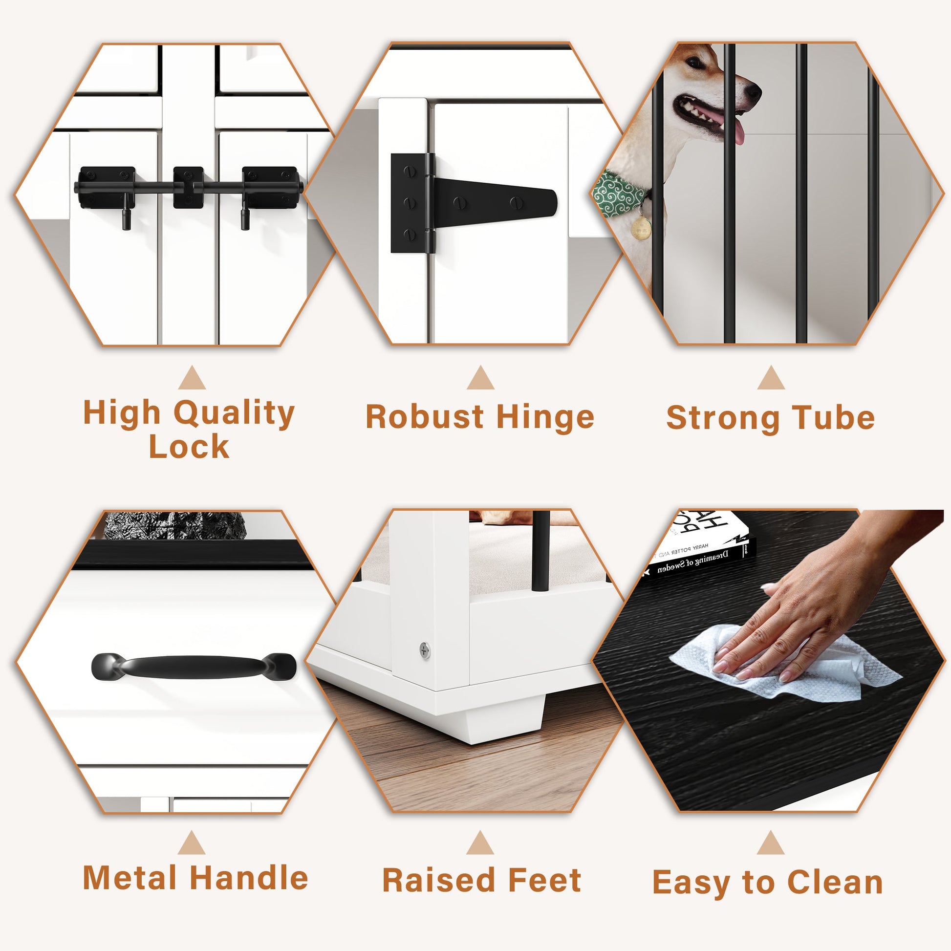 Offrez à vos animaux de compagnie un espace élégant et fonctionnel avec le grand meuble-cage en bois pour chien FUFU&GAGA. Ce chenil polyvalent comprend deux compartiments spacieux, de nombreux rangements et un design qui s'harmonise avec tous les intérieurs, garantissant à vos compagnons à quatre pattes un lieu de repos confortable et sécurisé.