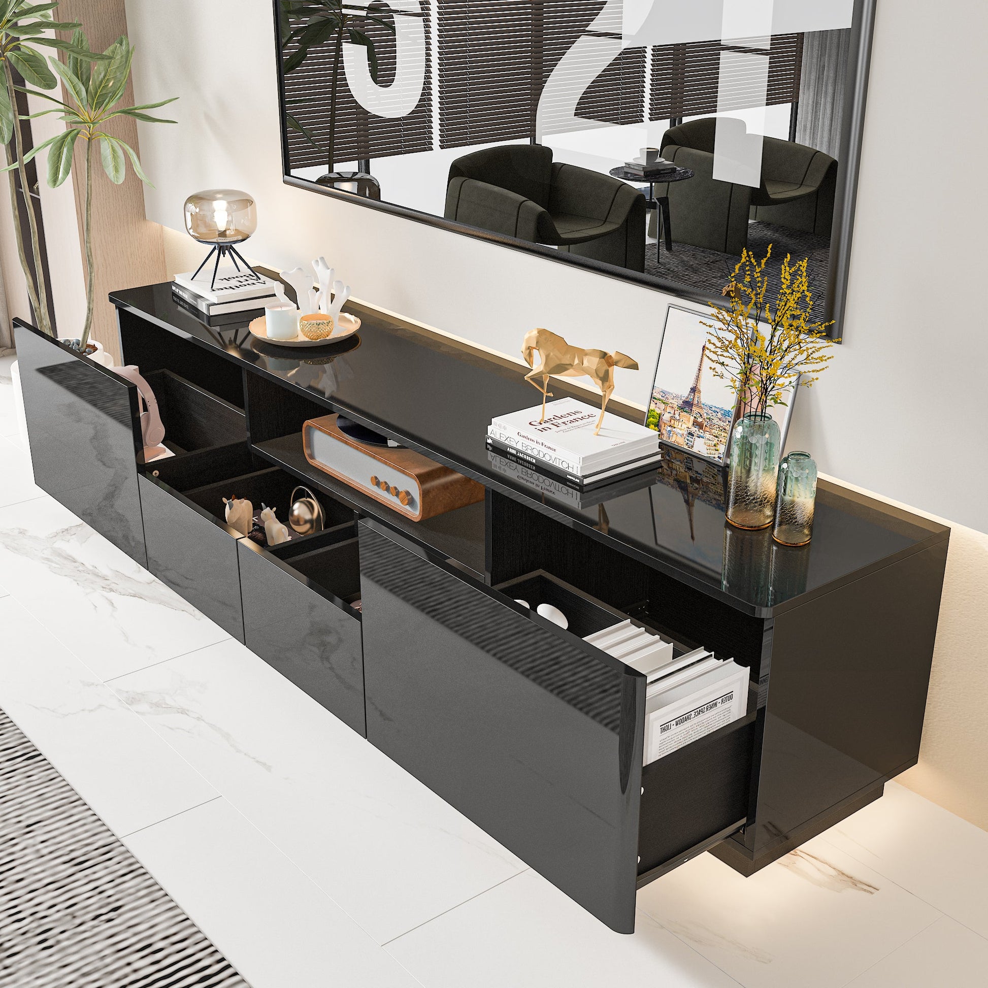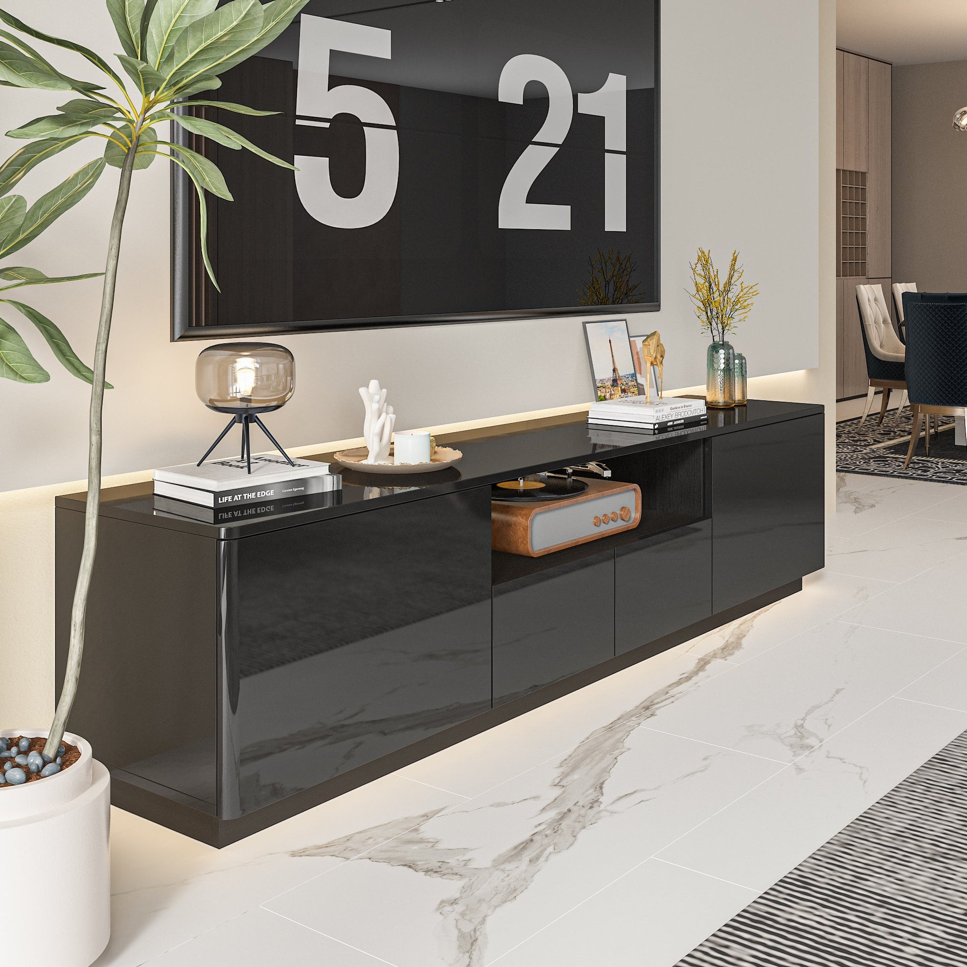 Ce meuble TV avec bande lumineuse LED vous offre une expérience visuelle immersive exceptionnelle. Sa surface brillante reflète la lumière et crée une ambiance plus agréable.