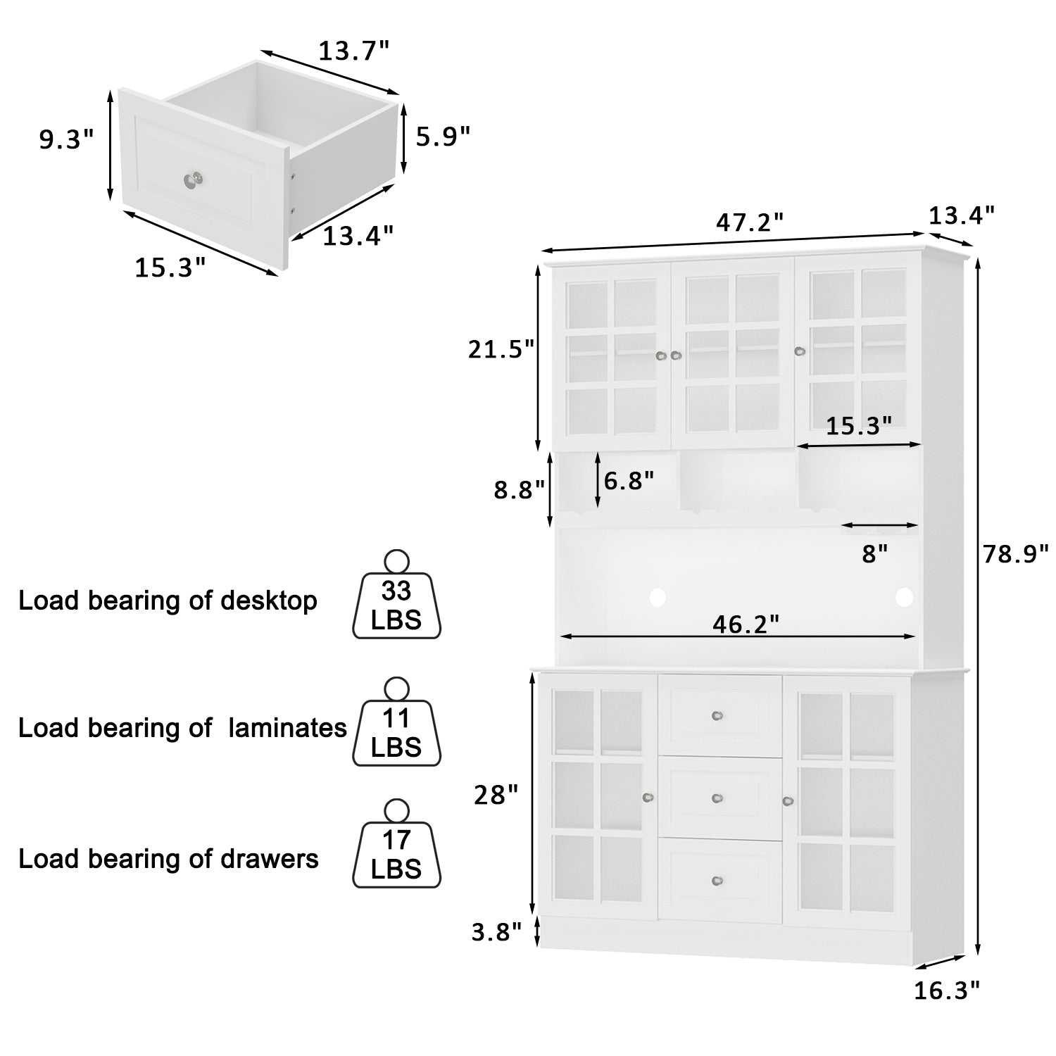 Ce meuble de cuisine est idéal pour décorer votre pièce : polyvalent et unique, ce buffet offre de nombreux espaces de rangement pour répondre à tous vos besoins. Son compartiment central spacieux permet d'y installer un four à micro-ondes, un grille-pain et d'autres appareils électroménagers. Grâce à son style adaptable, il peut servir aussi bien de cave à vin dans votre bar que de meuble bar à café ou de console dans votre salle à manger.