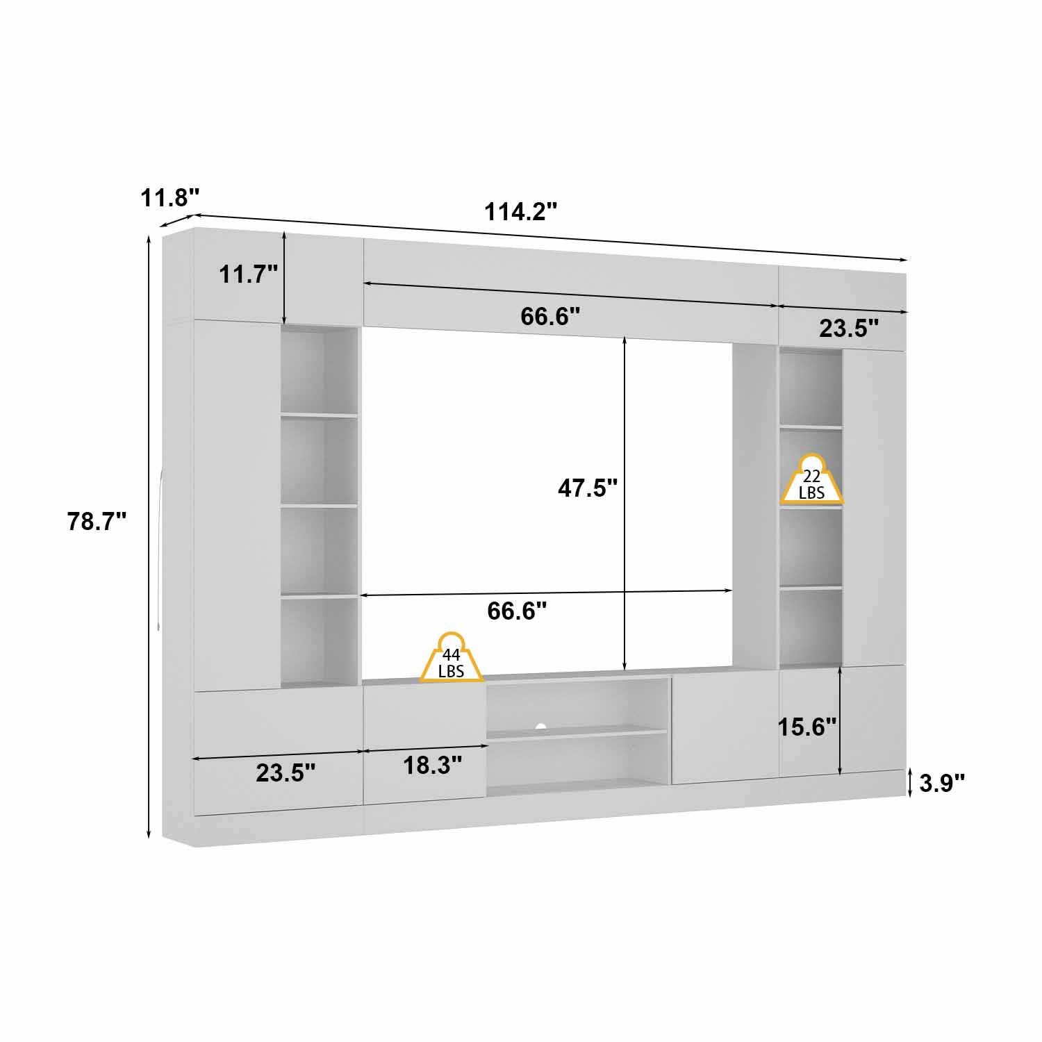 Réinventant un classique indémodable, notre meuble TV de 114,2 pouces apportera style et fonctionnalité à votre maison ou votre bureau. Doté d'un espace TV pouvant accueillir un écran de 75 pouces, ainsi que de nombreux rangements et étagères, ce meuble multimédia est aussi pratique qu'esthétique. Choisissez le modèle qui s'harmonisera parfaitement avec votre décoration intérieure et selon vos préférences.
