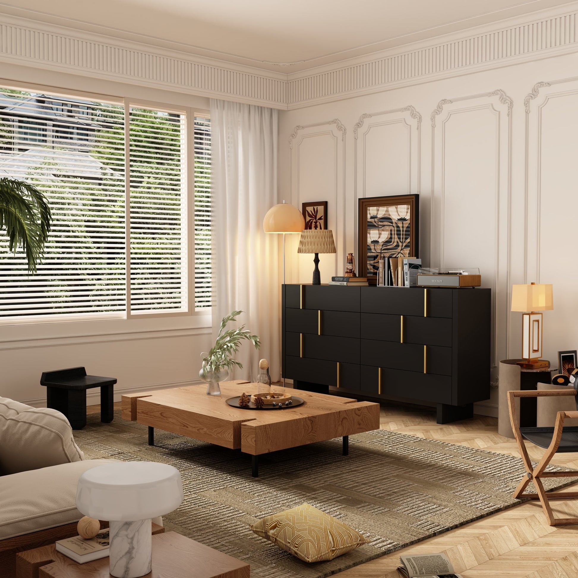 Commode moderne à 8 tiroirs avec détails dorés – Solution de rangement élégante pour la chambre