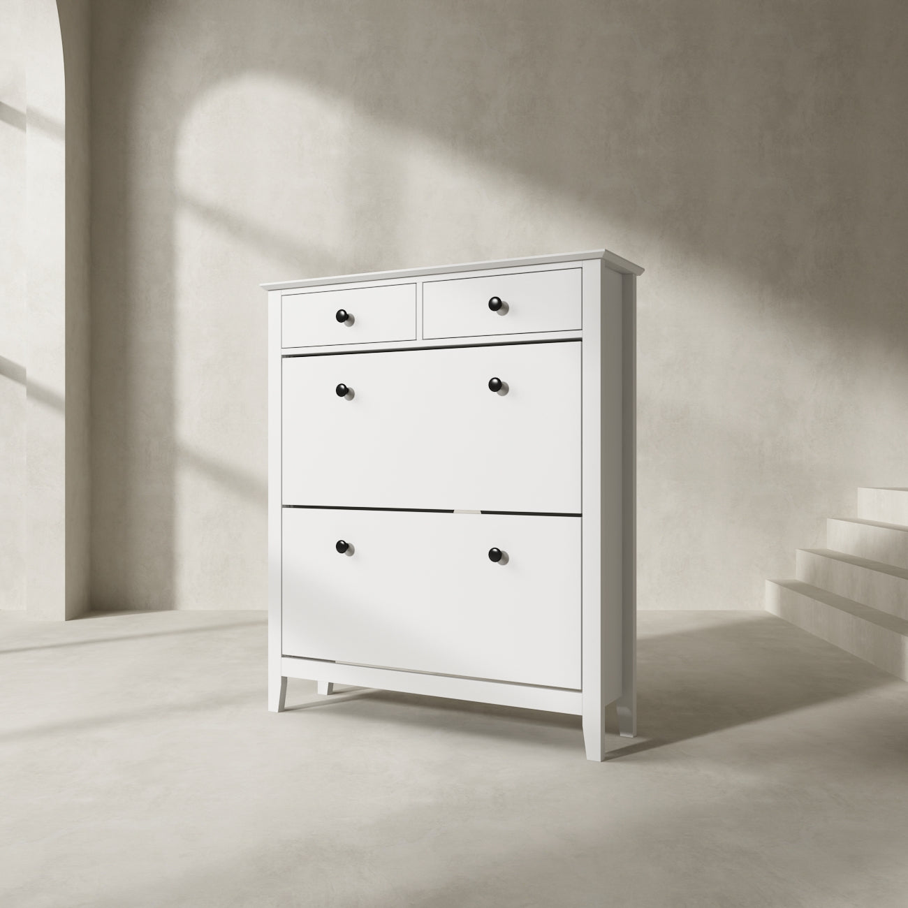 Meuble à chaussures en bois à 2 niveaux avec 2 tiroirs, idéal pour l'entrée