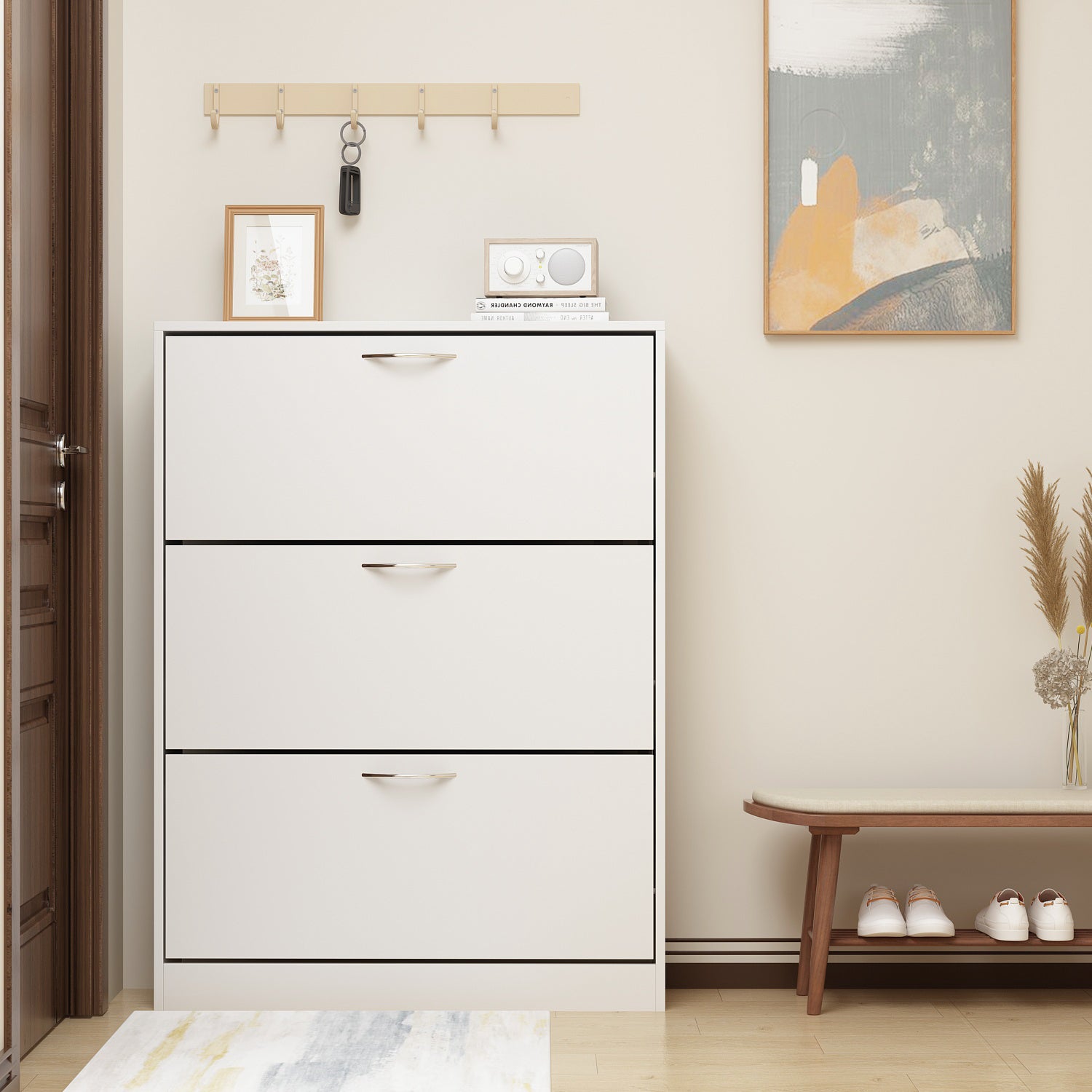 Meuble à chaussures moderne avec 3 tiroirs rabattables, étagère à chaussures en bois, organisateur de rangement pour entrée ou couloir.