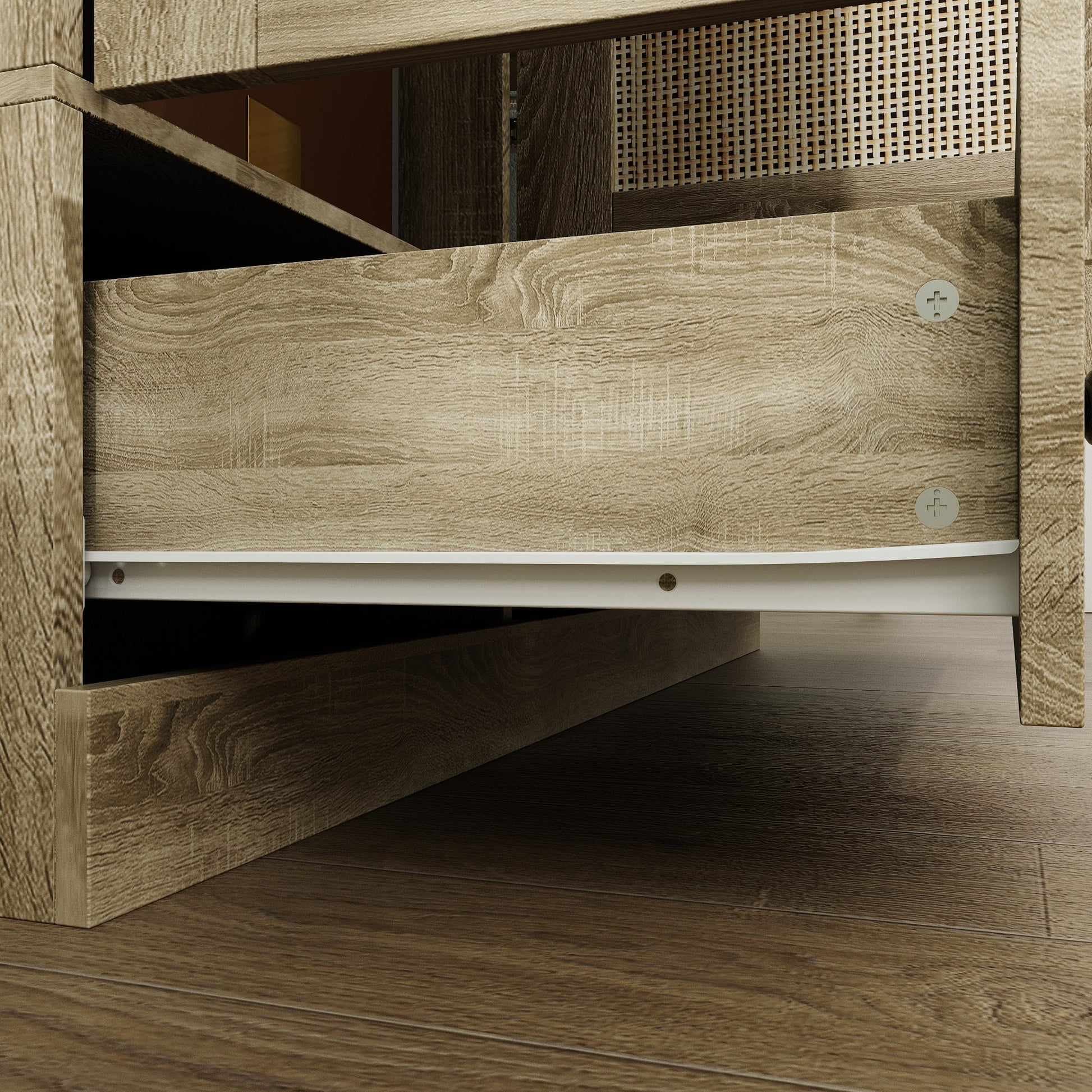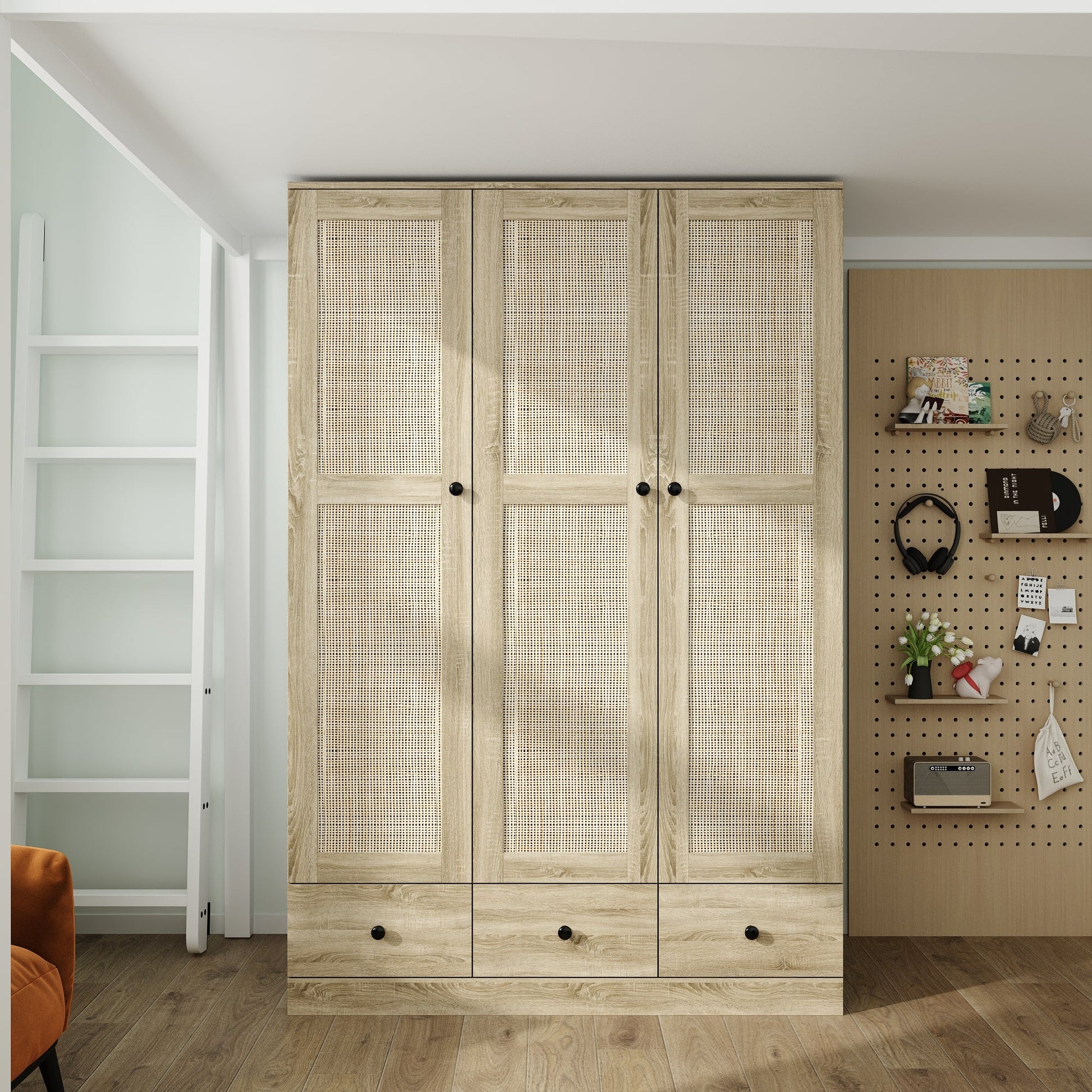 Le brun à la texture veinée du bois, associé aux portes en rotin tressé, souligne le style rustique et champêtre de cette armoire. Son grand espace de rangement n'est pas son seul atout. Elle offre de multiples compartiments : penderie, étagères et tiroirs, répondant ainsi à tous vos besoins de rangement pour vos vêtements, draps ou sacs à main. Rangez tout dans cette charmante armoire et votre chambre restera propre et bien rangée.
